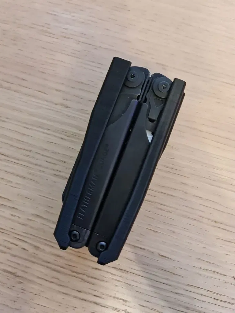 Tụi mình có cái bao da Leatherman Surge này, là phiên bản tùy chỉnh xíu của anh 3D-Designer_AT đó nha. Nó có chỗ để cả hai cái khay bit luôn, mà lại còn xài được với thắt lưng tới 55mm nữa đó. Tiện lợi ha!