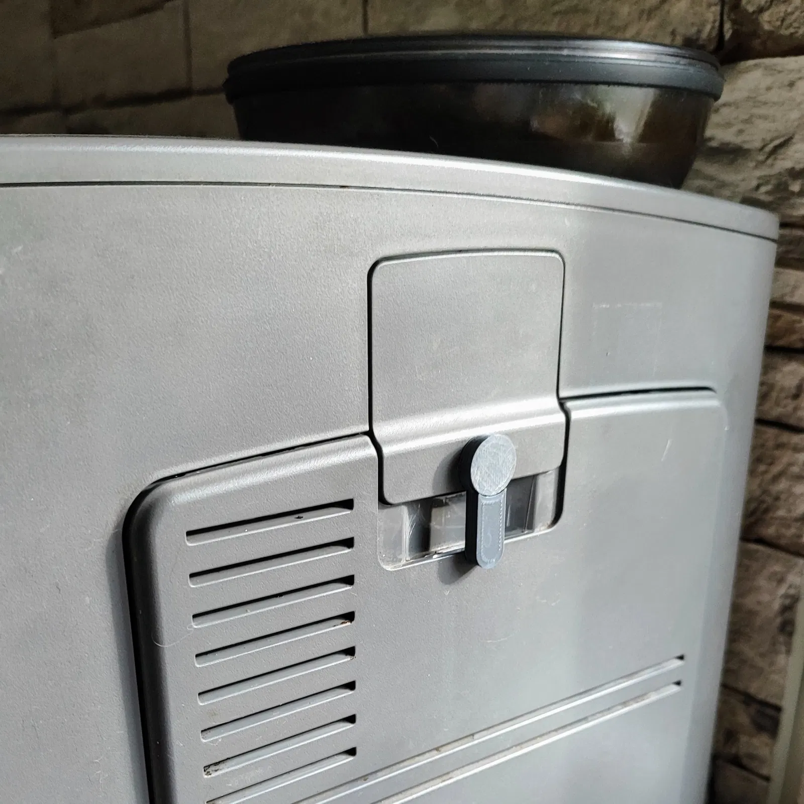 Ich habe diesen Riegel für unseren Kaffeeautomaten entwickelt, weil die Klemmstücke seiner Abdeckklappe zur Brüheinheit abgebrochen sind.