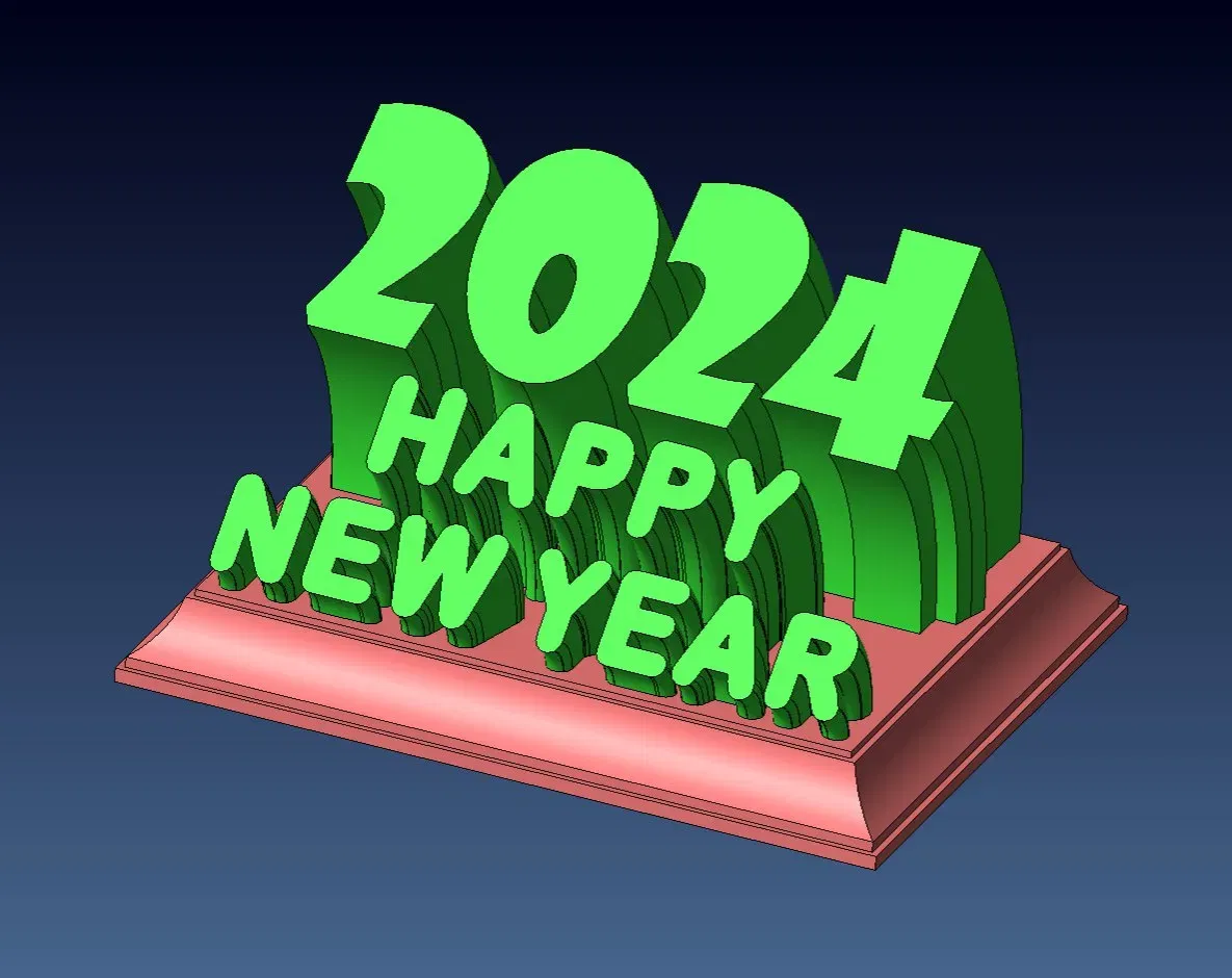 Khắc lời chúc mừng năm mới 2024 với 2 màu sắc. Mẫu in 3D này là một cách tuyệt vời để chào đón năm mới bằng cách sử dụng công nghệ in 3D để tạo ra những món đồ trang trí độc đáo và cá nhân hóa. Bạn có thể tùy chỉnh màu sắc để phù hợp với không gian của mình.