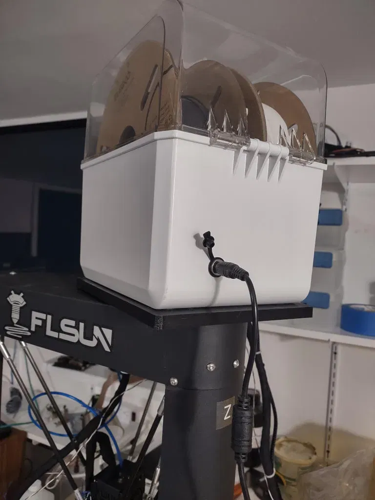 Bệ đỡ này cho phép bạn gắn máy sấy filament Sovol SH-01 lên trên máy in FLSUN QQ-S Pro một cách chắc chắn. Các rãnh được thiết kế để giữ chặt chân máy sấy, đảm bảo an toàn. Phiên bản này bao gồm file nguồn để tùy chỉnh. In bằng PLA nhưng ABS hoặc PETG được khuyến nghị cho độ bền cao hơn.