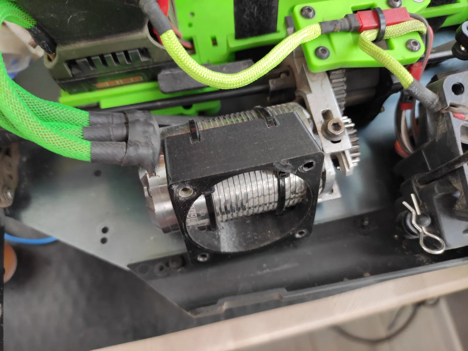 Đế gắn quạt cho motor xe RC, đường kính 41mm. Cái đế này được gắn bằng hai dây rút 2.5 mm và dùng cho quạt 50 mm. Có thêm lưới che cho quạt 50 mm.