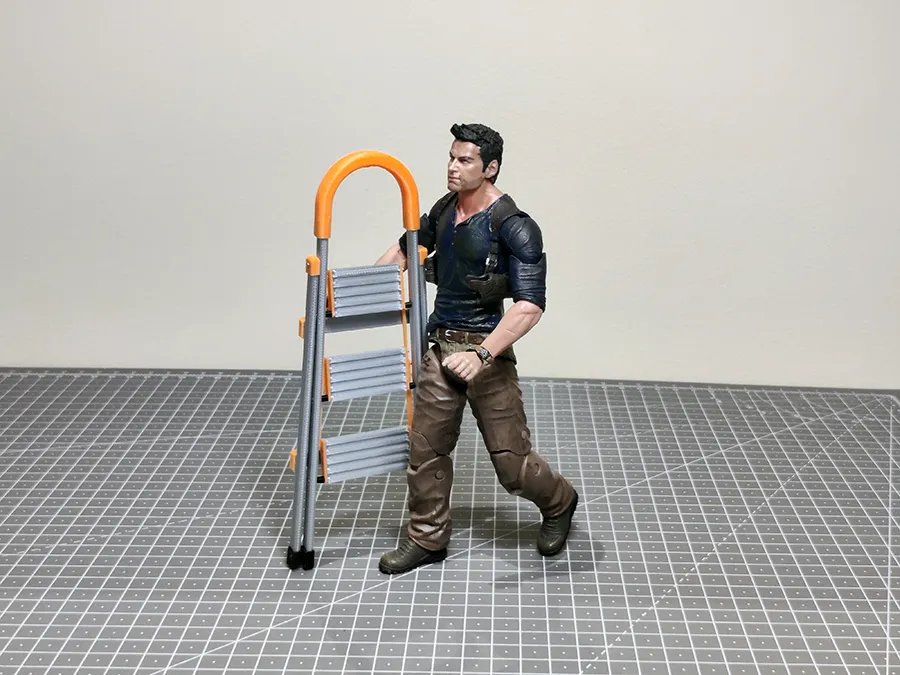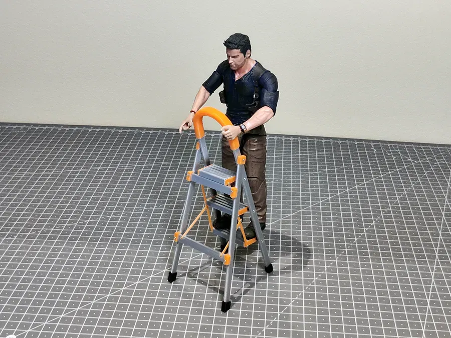 Đây là một cái thang gấp tỉ lệ 1/10. Có người gợi ý là vì tui đã có ghế với bàn rồi thì nên làm thêm cái thang cho mini wrestling. Tui thấy cũng vui vui mà rồi nghĩ làm cái gì đó có nhiều chi tiết chuyển động hơn.