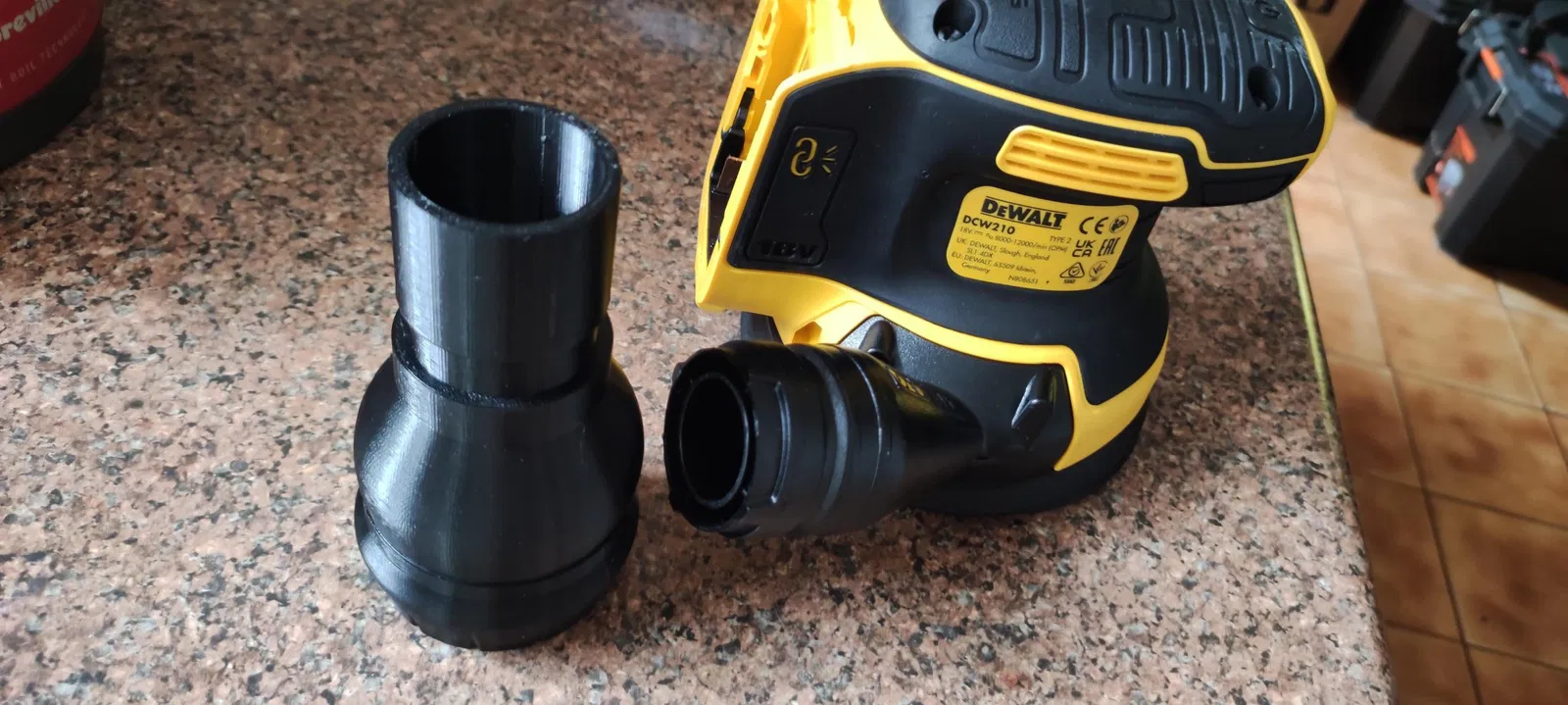Adapter nối dụng cụ De-Walt air lock với đầu nối nhanh máy hút bụi Makita. Có file STEP để tùy chỉnh. Nên dùng PETG thay vì PLA để tránh bị kẹt khi sử dụng. Cần 3 viên bi ¼ inch và dừng in ở 17-18mm để lắp bi.