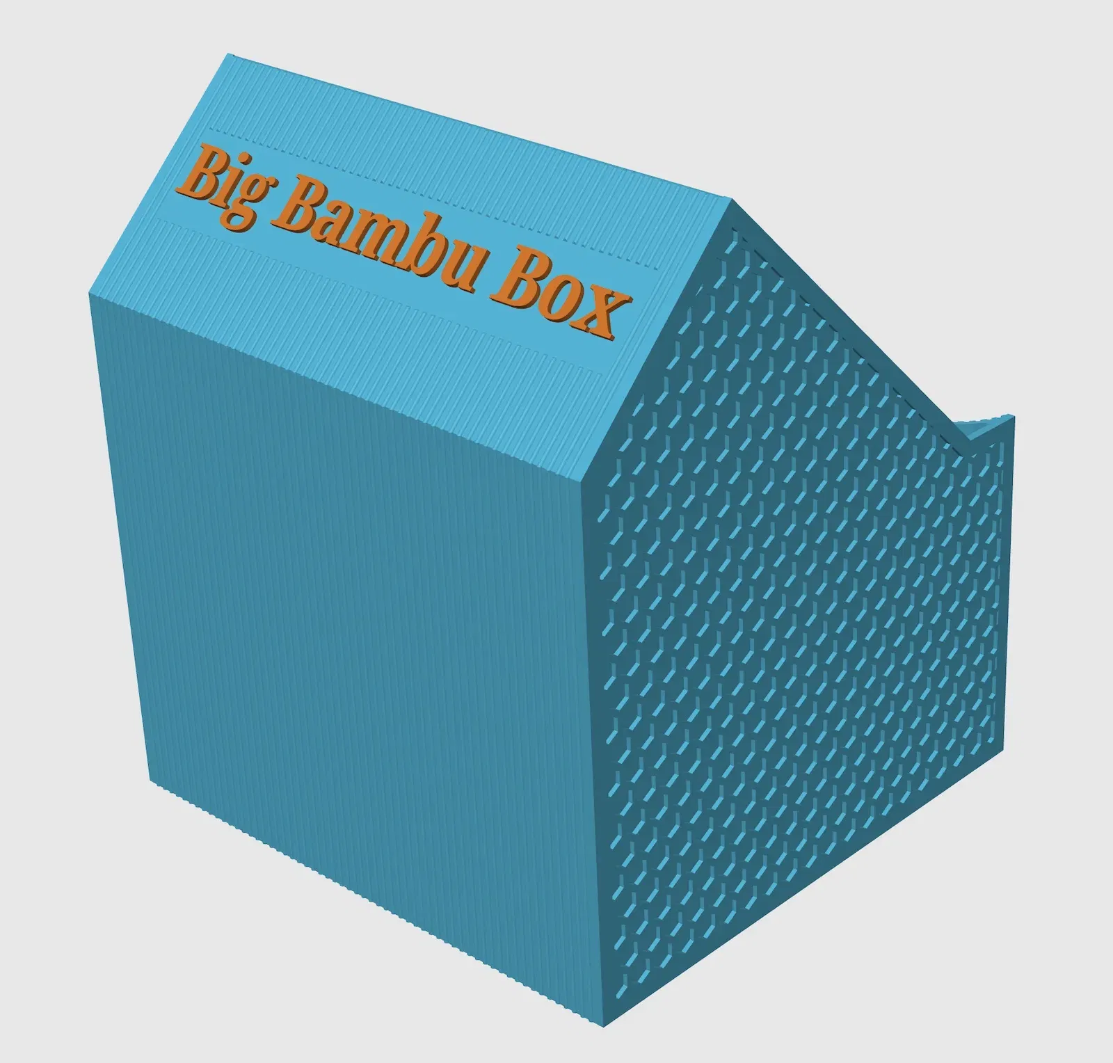 Một dự án BambuStudio cũng được bao gồm, đã được sơn trước cho hai màu. Điều này đã được sử dụng để in hộp Big Bambu trong các bức ảnh đính kèm. Bây giờ hãy tải xuống các tệp và in hộp Big Bambu của riêng bạn!