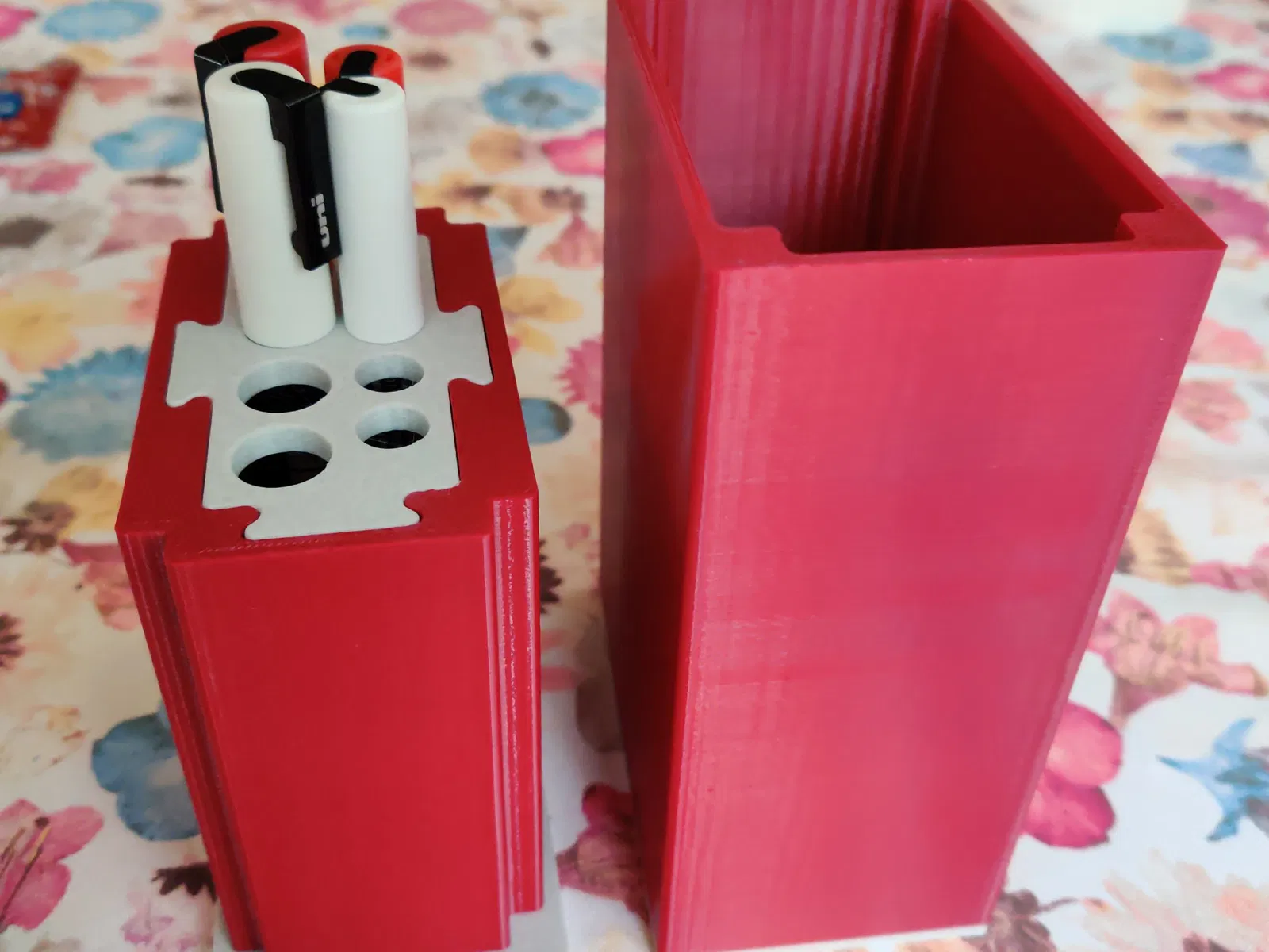Bất cứ thứ gì cũng sẽ hoạt động: các bản in trong hình được in bằng KiwiFil PLA Pro, trong Cranberry và Light Marble, nhưng bạn có thể sử dụng bất kỳ loại PLA nào, hoặc thực tế là hầu hết các vật liệu khác. Nếu bạn mong đợi hộp sẽ phải chịu nhiều va chạm, bạn có thể muốn xem xét PETG hoặc ABS (hoặc ASA), nhưng điều này không cần thiết nếu nó chỉ sống trên bàn hoặc trong ngăn kéo.