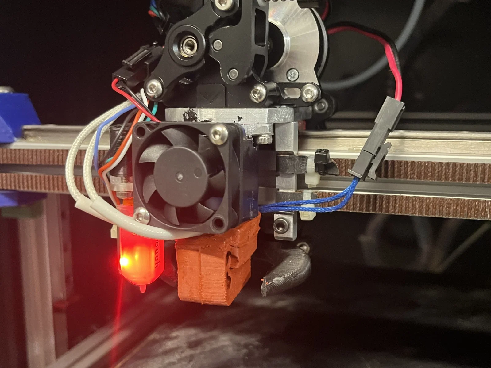 của Karnadi, mà tui thấy gắn vô hotend của tui hổng có được ngon lắm. Nên tui thiết kế lại cho nó mỏng hơn chút, với lại chú trọng hơn ở phần ôm trên của hotend.