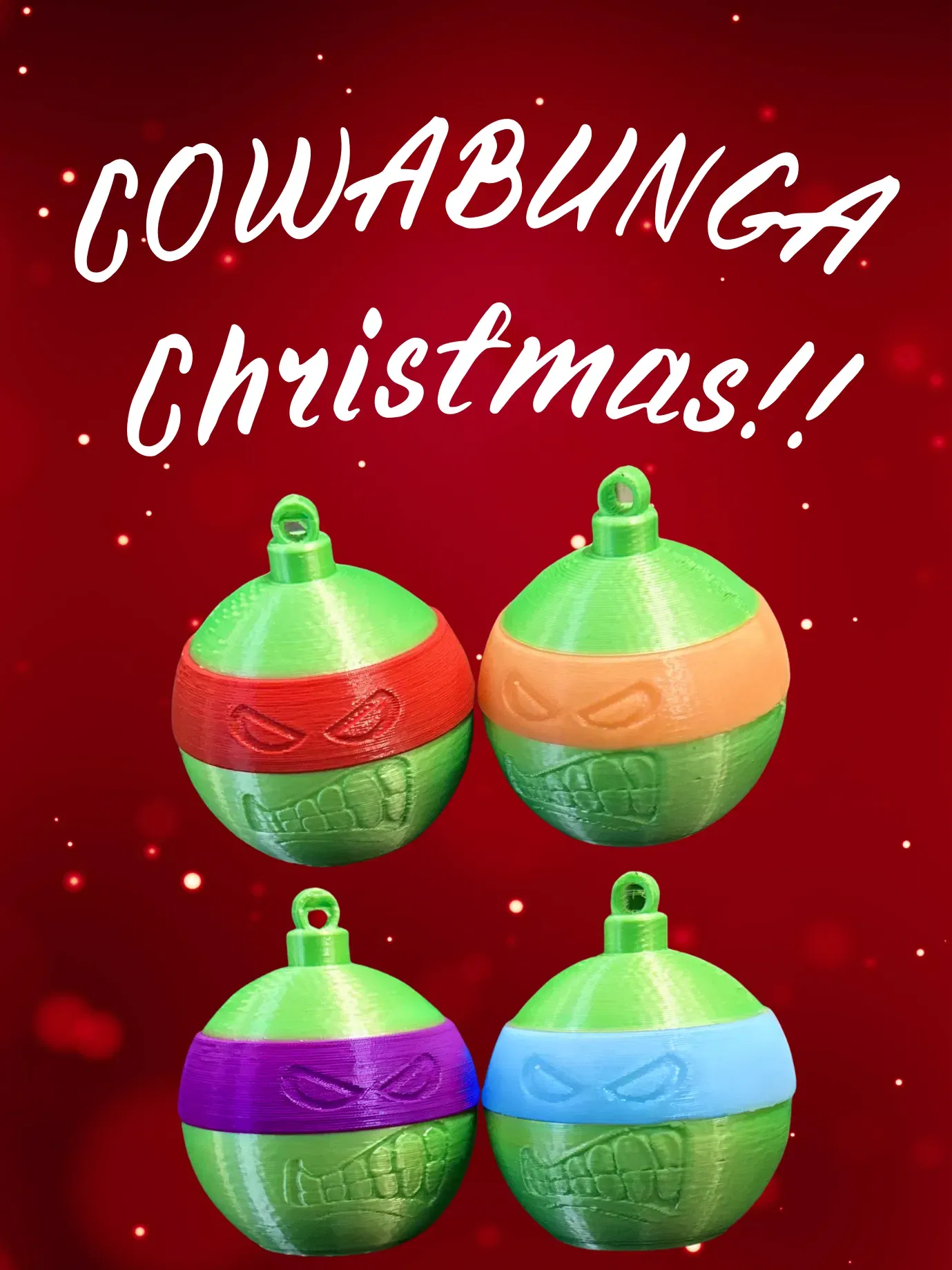 This 3D printed Christmas ornament is designed to resemble a ninja turtle. It is a unique and eye-catching addition to your holiday decorations. Hang it on your Christmas tree or use it as a decorative piece around your home. It is the perfect gift for ninja turtle fans and adds a touch of fun to your festive celebrations. There is a smiling version as well.