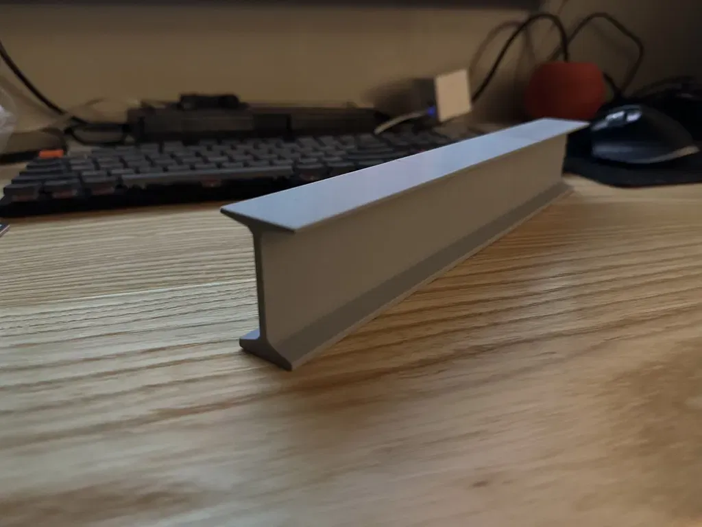 Dầm Tee Utah Bulb cao 74 inch được mô hình hóa trong Fusion 360 ở kích thước thật. Khi scale xuống 2.7%, nó cao 2 inch và dài 12 inch khi in cả ba phần. Dùng keo và kẹp để nối các phần lại với nhau, thích hợp làm đồ trang trí bàn làm việc.