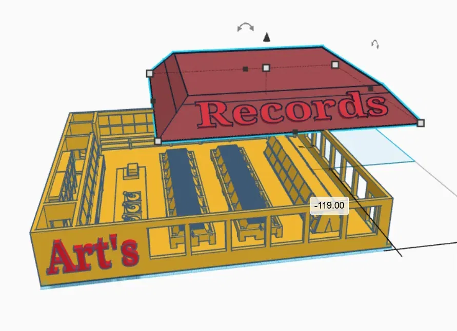 Một mô hình tiệm đĩa vinyl đậm chất thập niên 1950, tái hiện lại không khí hoài cổ của một cửa hàng nhạc xưa. Mô hình có tầng chính và phần mái, là điểm nhấn độc đáo cho bộ sưu tập 3D của bạn.