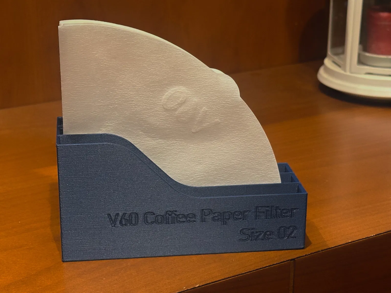 Cái holder đựng giấy lọc cà phê Hario V60 size 02 này in siêu dễ, tốn ít vật liệu. Mỗi ngăn sâu 15mm, đựng được 40 giấy lọc, tổng cộng 120 giấy lọc.