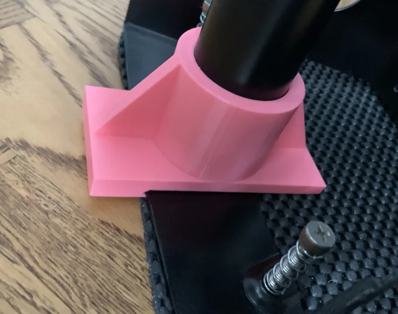 Simply replace the foot nearest your kick pad with this and place the edge of the KD-10 base against the lip on the bottom. I have my kick sat on top of a thin rubber mat, so you might want to adjust the depth of the lip to suit your stack height. I also brace my rack against the wall, so the whole thing is rock solid and no longer creeps its way across my wood floor when I play.