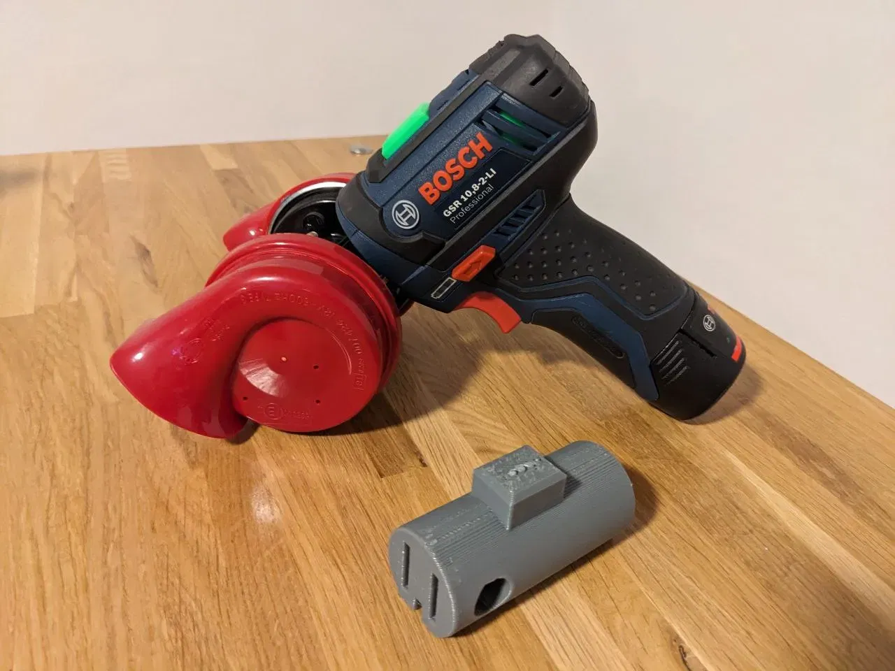 Khoan giờ là chuyện của ngày hôm qua - giờ là lúc vi vu với còi xe không dây! Biến máy khoan Bosch của bạn thành còi xe cực lớn, hoạt động với các mẫu GSR 12V-15 và GSB 10,8V-2-Li. Cần thêm mỏ hàn, dây điện, ống co nhiệt, bu lông và đai ốc.