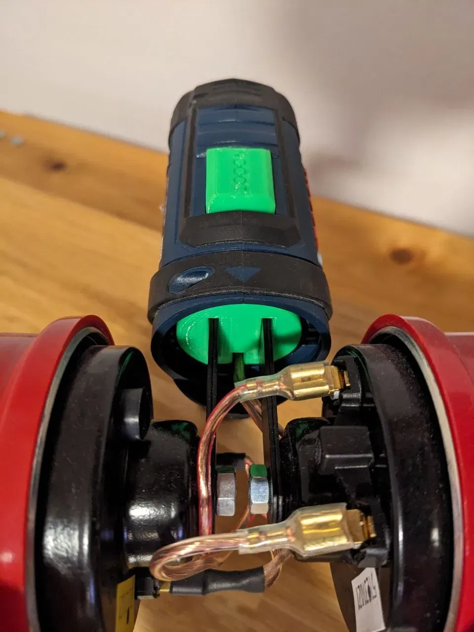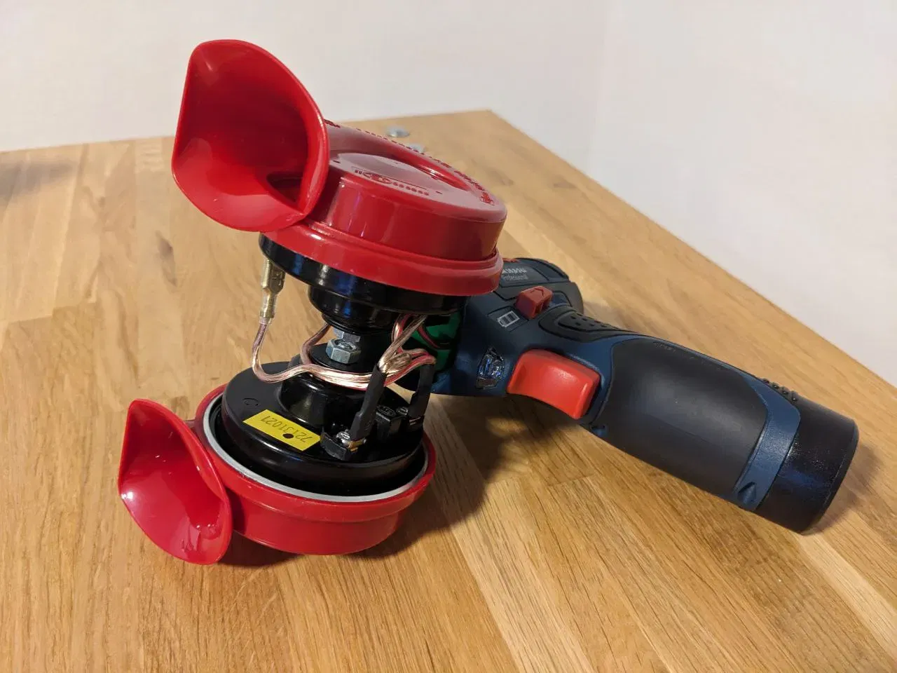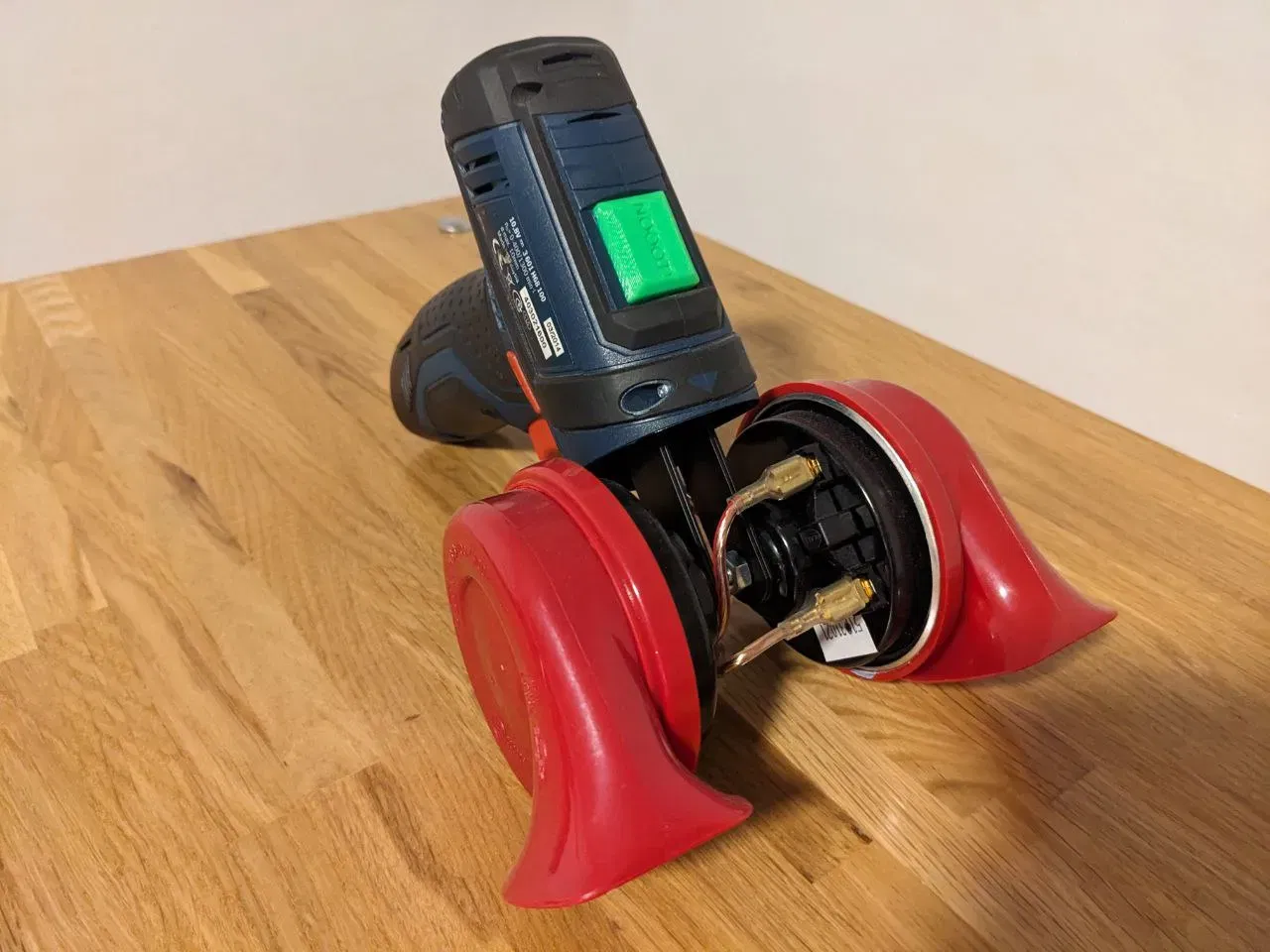 Biến chiếc máy khoan Bosch Professional không dây quen thuộc của bạn thành một cái kèn cực kỳ lớn không dây! Tôi đã chế tạo của mình với kèn Hella autoot horns TE24 (3FH 007 424-811) đấu song song với dây động cơ ban đầu.