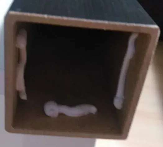 Chúng được vặn vào toàn bộ chân bàn, tôi chỉ lấy 2 cái và đẩy chúng vào chân bàn kia, vốn rỗng bên trong sau khi được rút ngắn. Tôi đã phết một ít keo vào chân bàn đã cưa trước đó.
