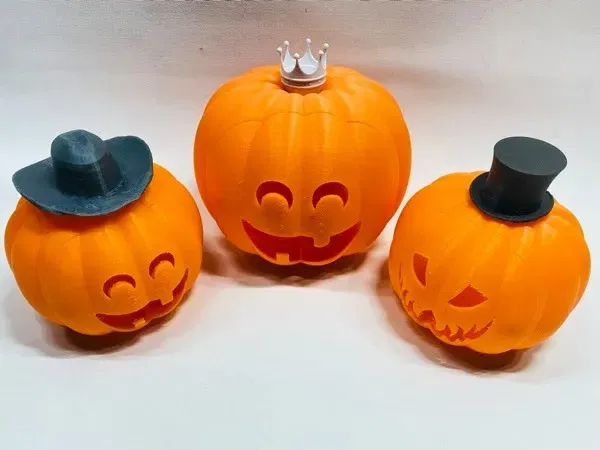 Bộ sưu tập nón độc đáo cho quả bí ngô Jack O'Lantern, lấy cảm hứng từ nón phù thủy. Bao gồm nón mũ, nón cao bồi và nón miện. Có hướng dẫn in chi tiết cho từng loại, kèm theo thông tin về máy in Prusa i3 MK2.5, độ phân giải 0.2mm và yêu cầu support.