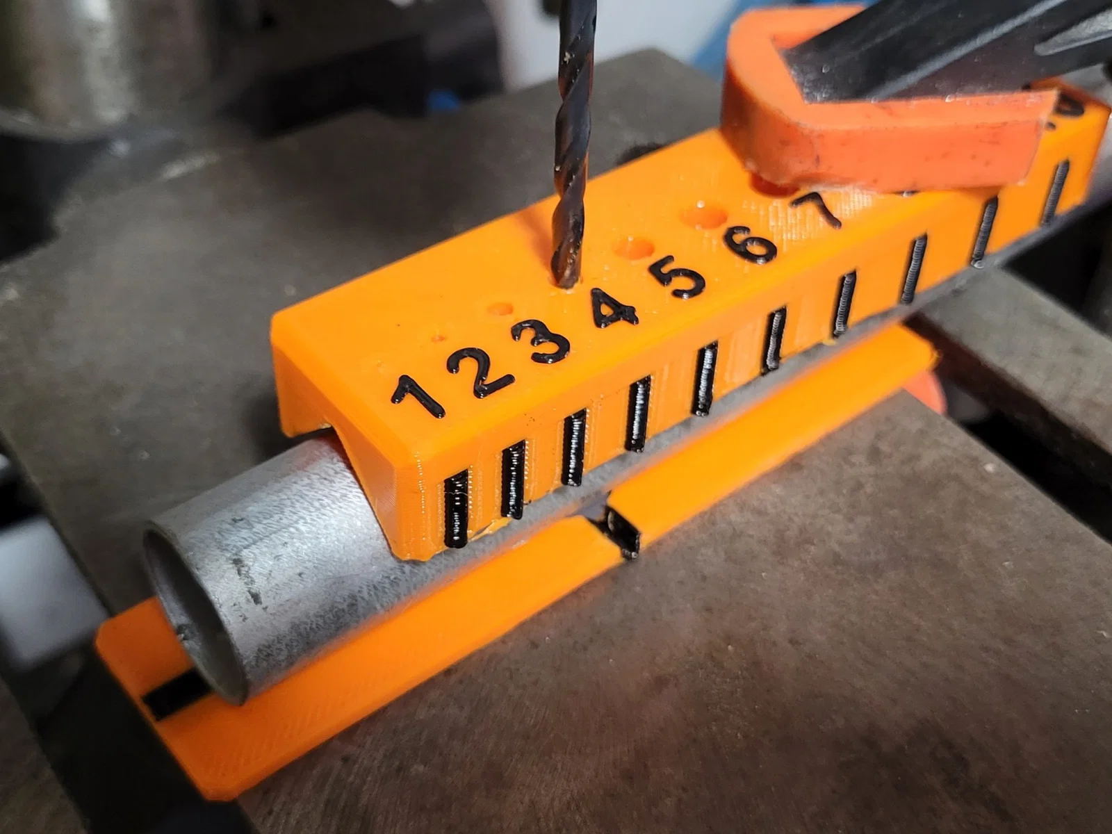 Một bộ dẫn hướng đơn giản để căn chỉnh mũi khoan trên các vật thể tròn như ống và tuýp.