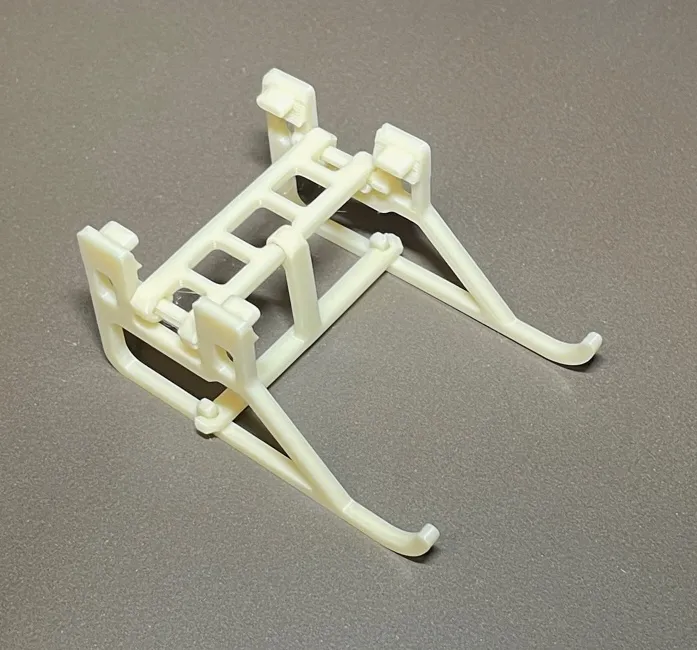 Đây là một thiết bị hạ cánh có thể gập lại cho máy bay không người lái DJI Mini 2. Nó in như một đối tượng duy nhất nhưng có bản lề để gập thành hình
