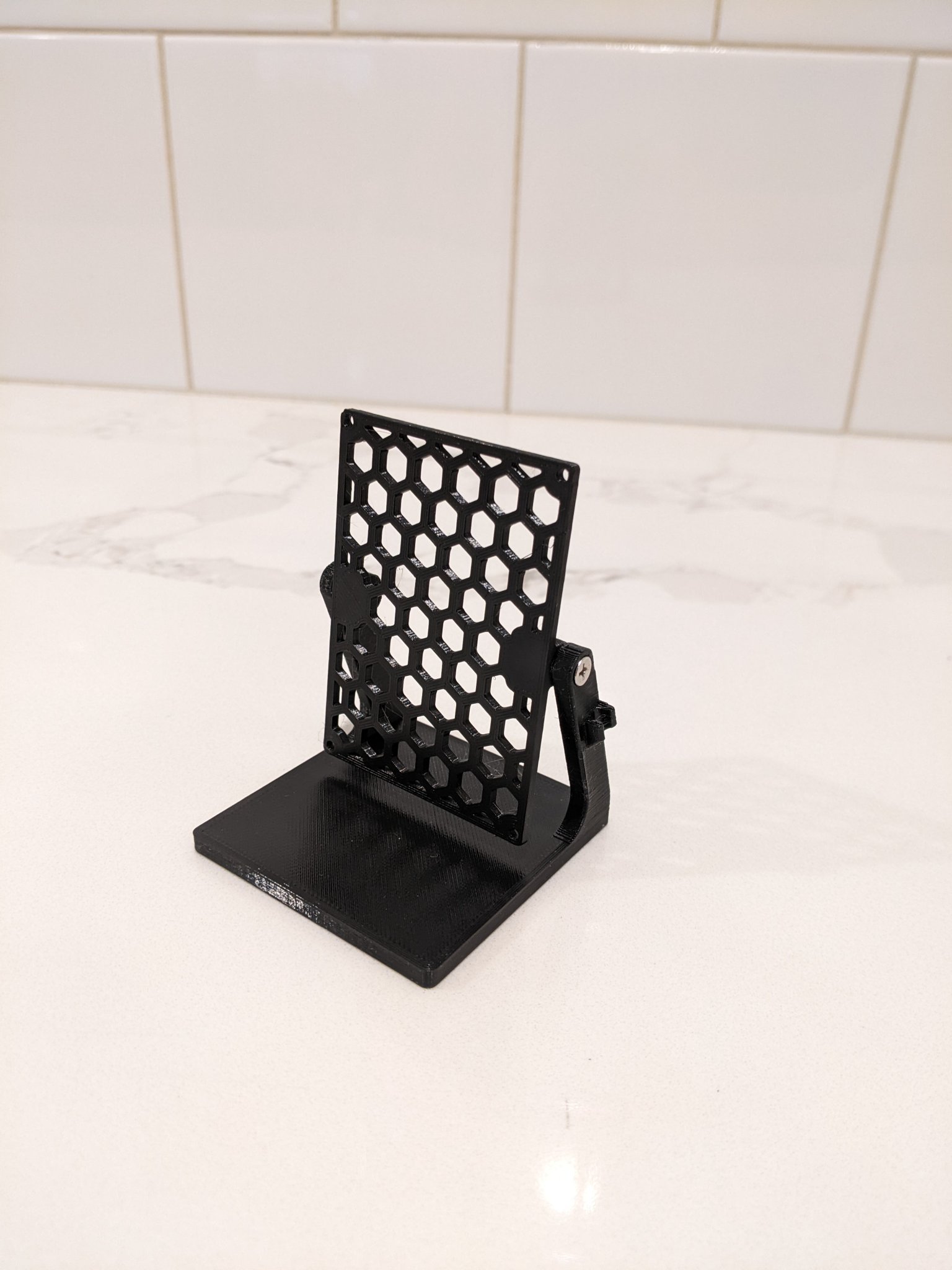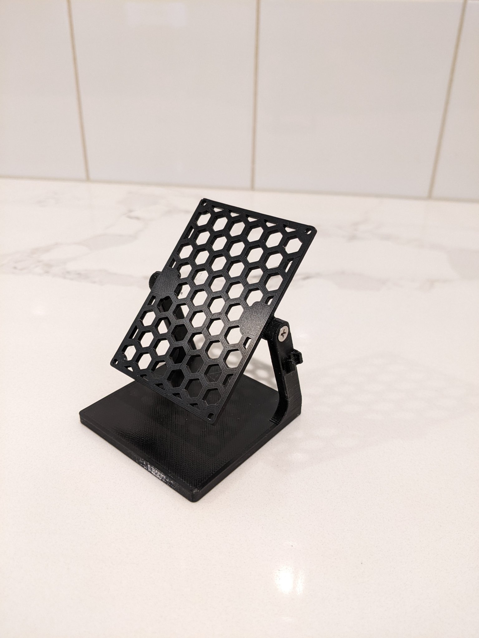 Đây là chân đế xoay, dùng để trưng bày bo mạch prototype kích thước 50mm x 70mm. Có ngàm giữ cáp và điểm xoay làm từ ốc M3, đai ốc ren nhiệt. Thích hợp cho các dự án trong nhà như theo dõi CO2.