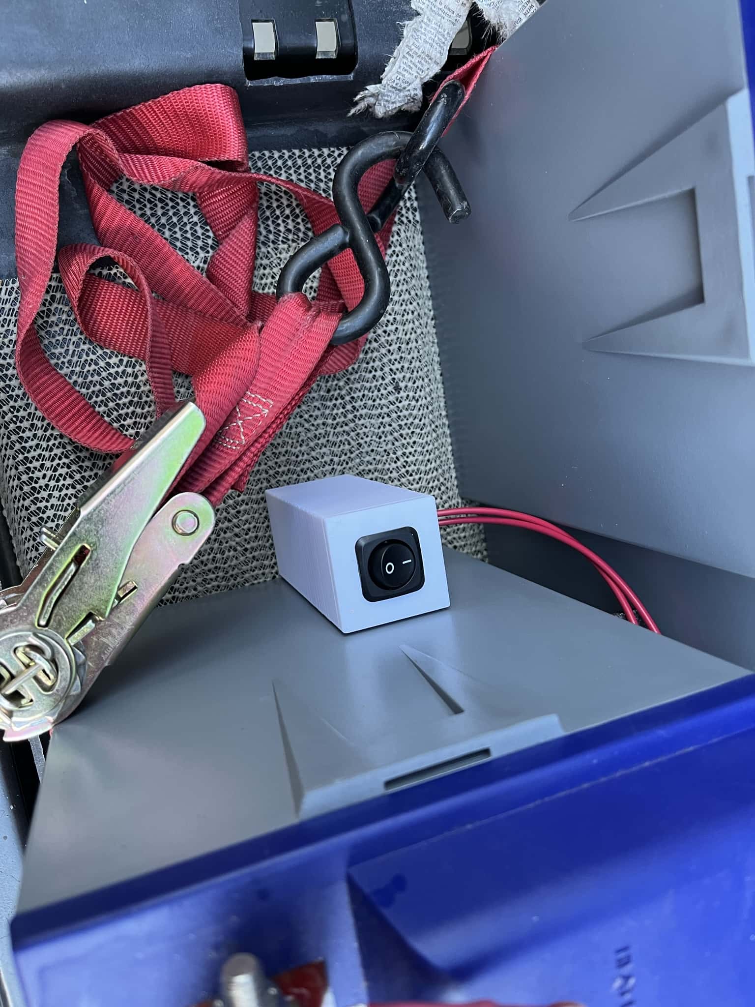 Cái đế bằng nhựa này dùng để gắn công tắc sưởi đi kèm pin lithium BattleBorn, giúp kiểm soát nhiệt độ bên trong pin. Bạn có thể dùng băng keo hai mặt để gắn. In bằng PETG, độ phân giải 0.20mm.