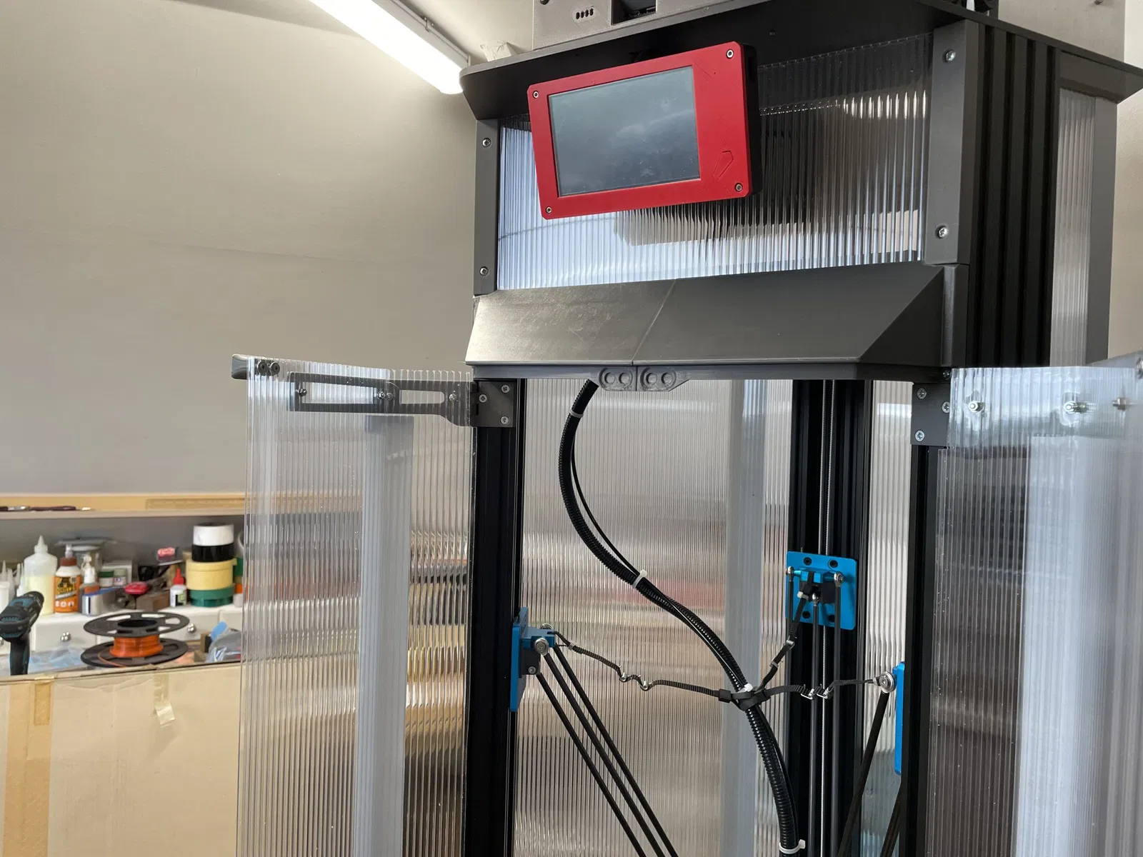 Thiết kế này dành cho một vỏ máy hoàn chỉnh cho Tevo Little Monster và sử dụng tấm lợp polycarbonate hai lớp dày ¼ inch (hoặc 6mm). Bạn sẽ cần một tấm 1Mx2M. Tôi cũng đã sử dụng tấm này cho cửa, nhưng nếu bạn cần tầm nhìn tốt, các tấm cửa phía trước có thể được làm bằng tấm polycarbonate hoặc acrylic trong suốt thay vì loại hai lớp.