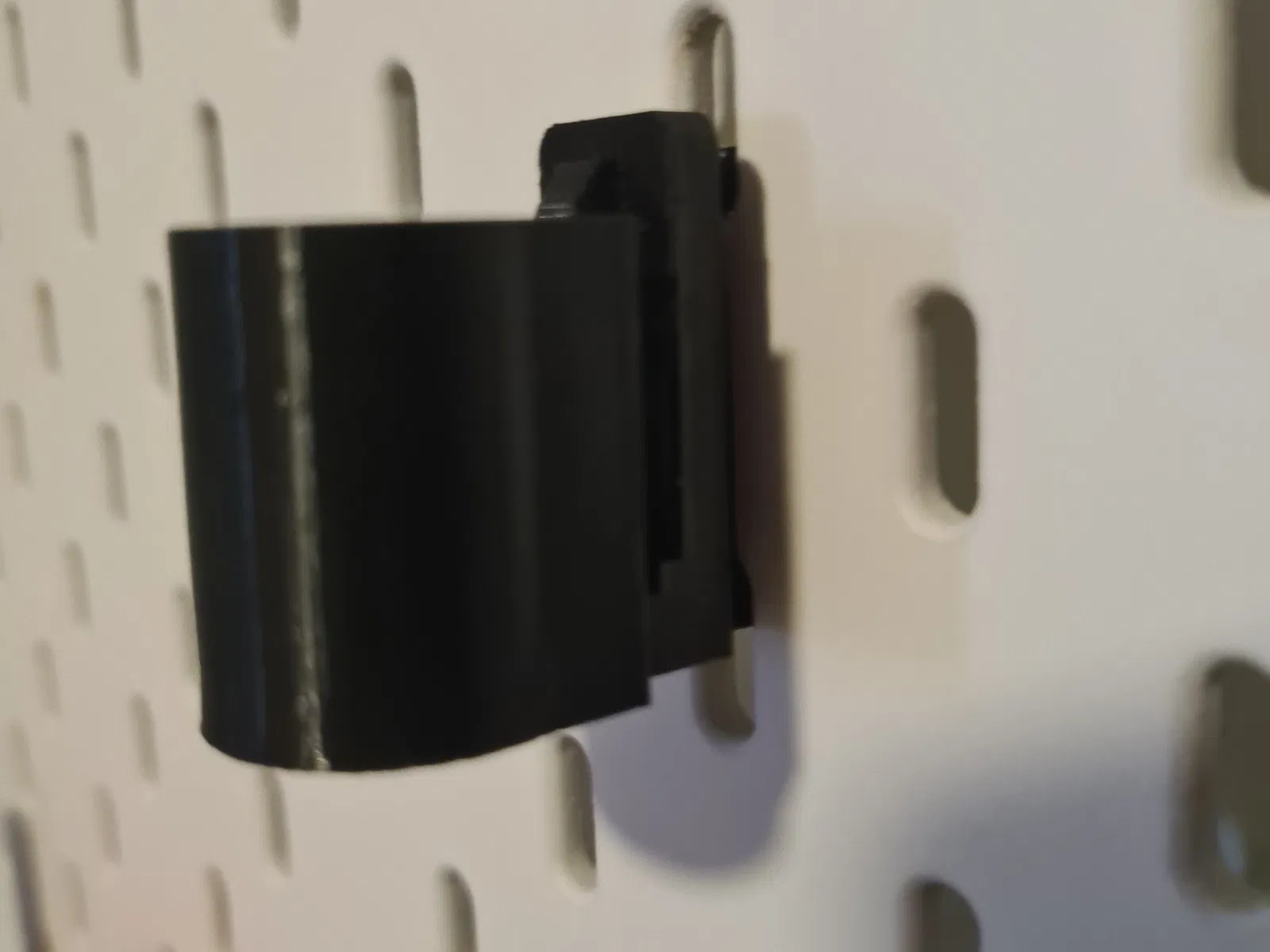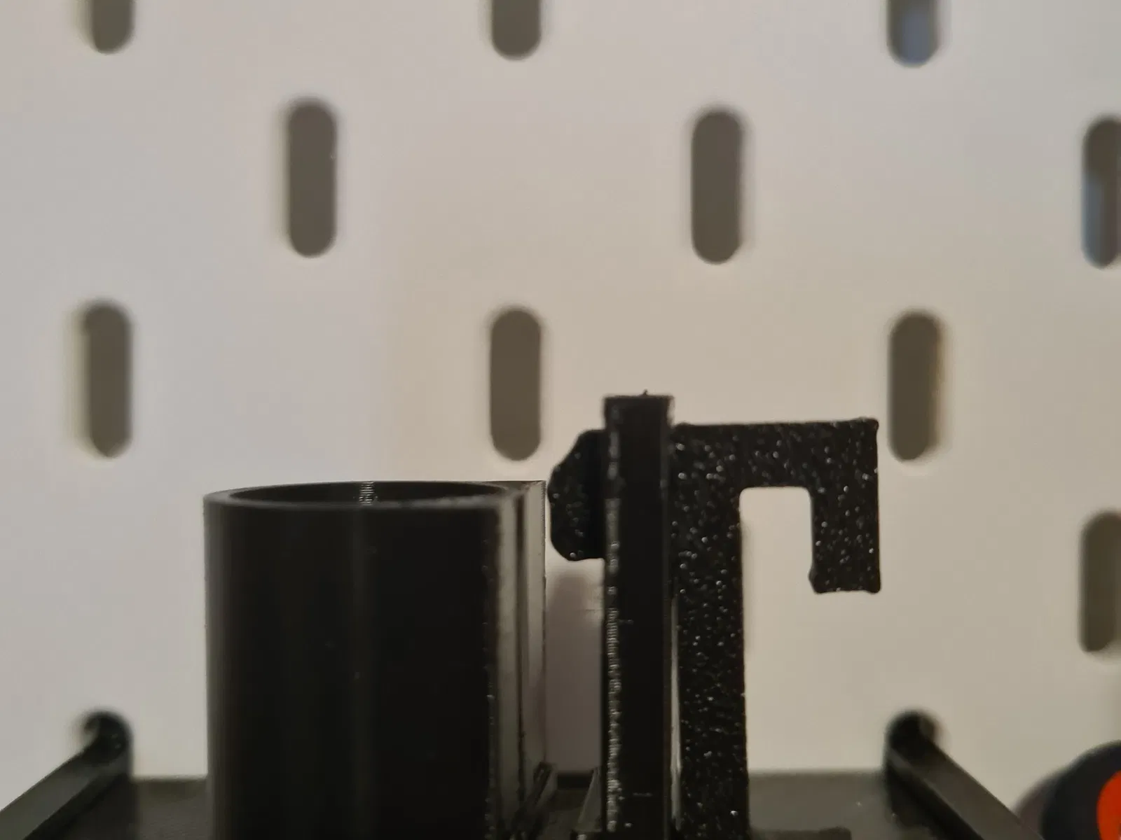 Một giá đỡ mà tôi đã làm cho ikea skadis. Nó dành cho một máy bơm hàn thông thường (20mm ⌀) và gắn vào bảng skadis bằng cách sử dụng một móc đa năng.