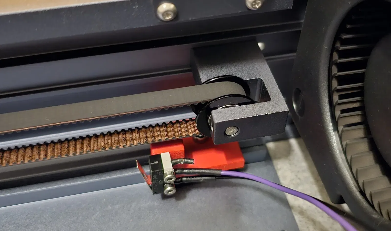 Để lắp trên trục X, tốt nhất là tháo thanh trượt ray đỡ. Sau đó, bạn có thể trượt đai ốc vào rãnh chữ V từ bên cạnh.