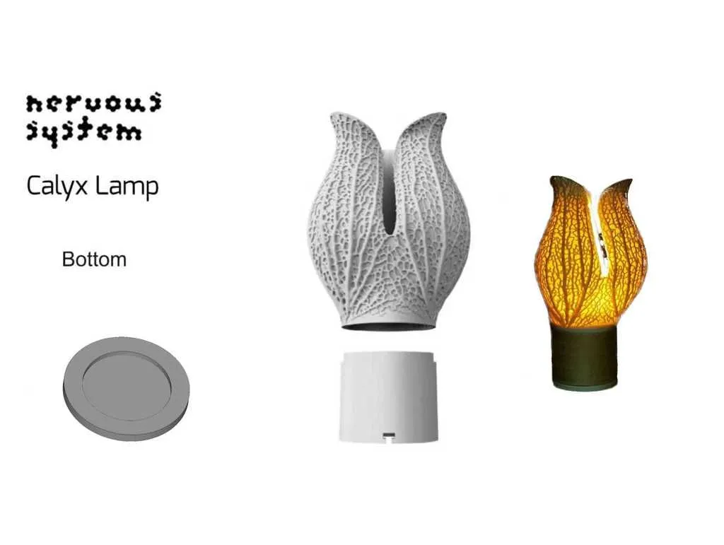 Tôi đã mua những chiếc đèn tuyệt vời Hyphae Calyx và Bromeliad từ Nervous System (). Tôi có một bộ phận đèn không vừa hoàn hảo và tôi muốn làm một tấm đáy để bịt kín nó. Nó cũng trông đẹp, bạn có thể in các biến thể màu sắc. Tôi đã thêm hai phiên bản, một phiên bản phẳng và một phiên bản có rãnh nếu bộ phận cần nhiều không gian hơn. Dán tấm đáy vào dưới cùng để các linh kiện điện tử được bịt kín.