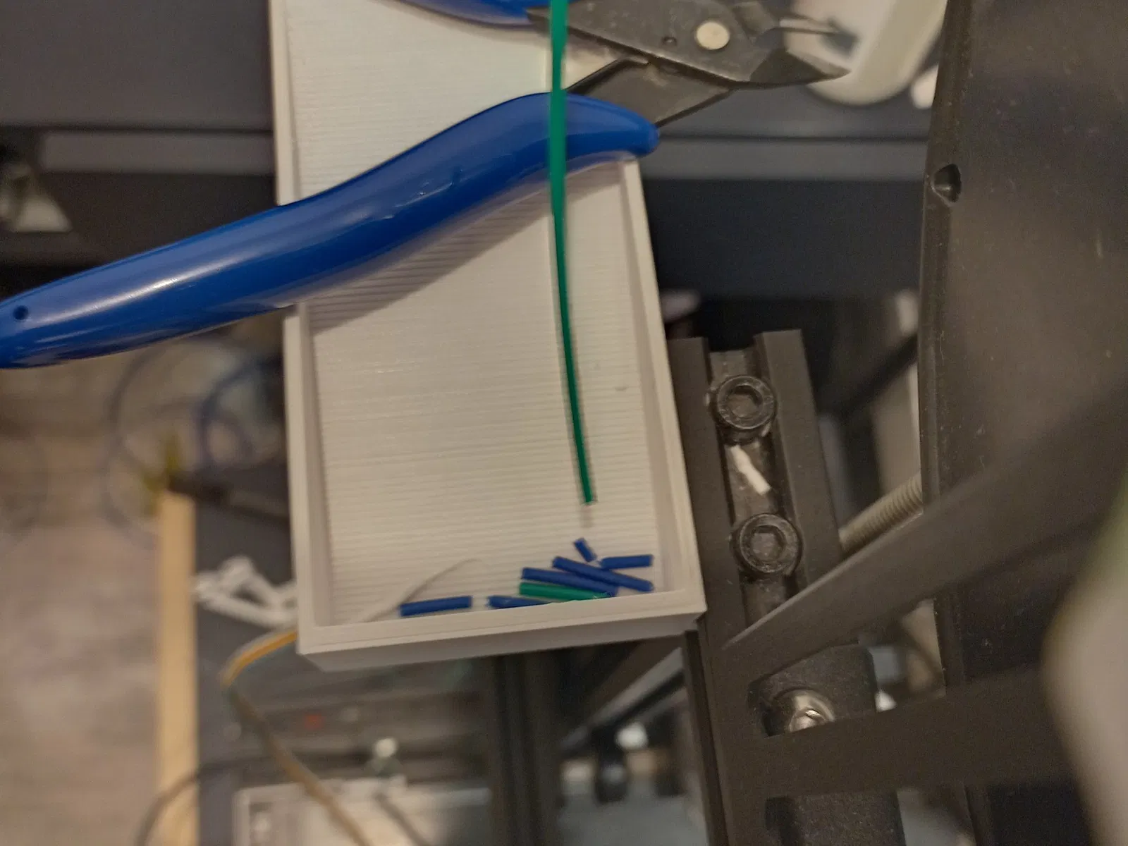 Cái hộp đựng này là mình tự thiết kế, giúp bạn sắp xếp gọn gàng mấy vụn nhựa filament còn thừa sau khi cắt. Rất là tiện lợi cho các anh em xài máy in Ender 3 và các phiên bản nâng cấp của nó.