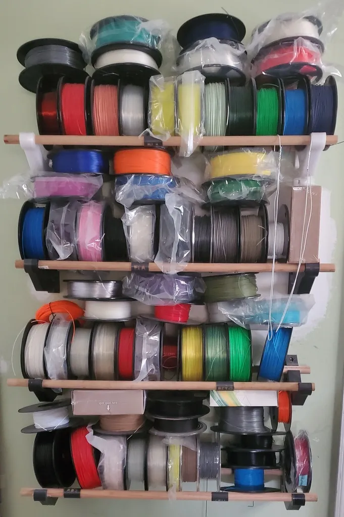 Đây là một giá treo nhanh chóng và dễ dàng để in cho kệ tường filament! Đây là một kệ tường đơn giản cho cuộn filament được thiết kế để tiết kiệm không gian lưu trữ. Những lợi ích của thiết kế này so với việc chạy một thanh đơn qua tất cả các cuộn cho phép người dùng lấy bất kỳ cuộn riêng lẻ nào mà không cần phải lấy các cuộn khác ra trước. Các giá treo in được thiết kế tối thiểu để hỗ trợ các thanh dowel mà không gây cản trở tổ chức cuộn.