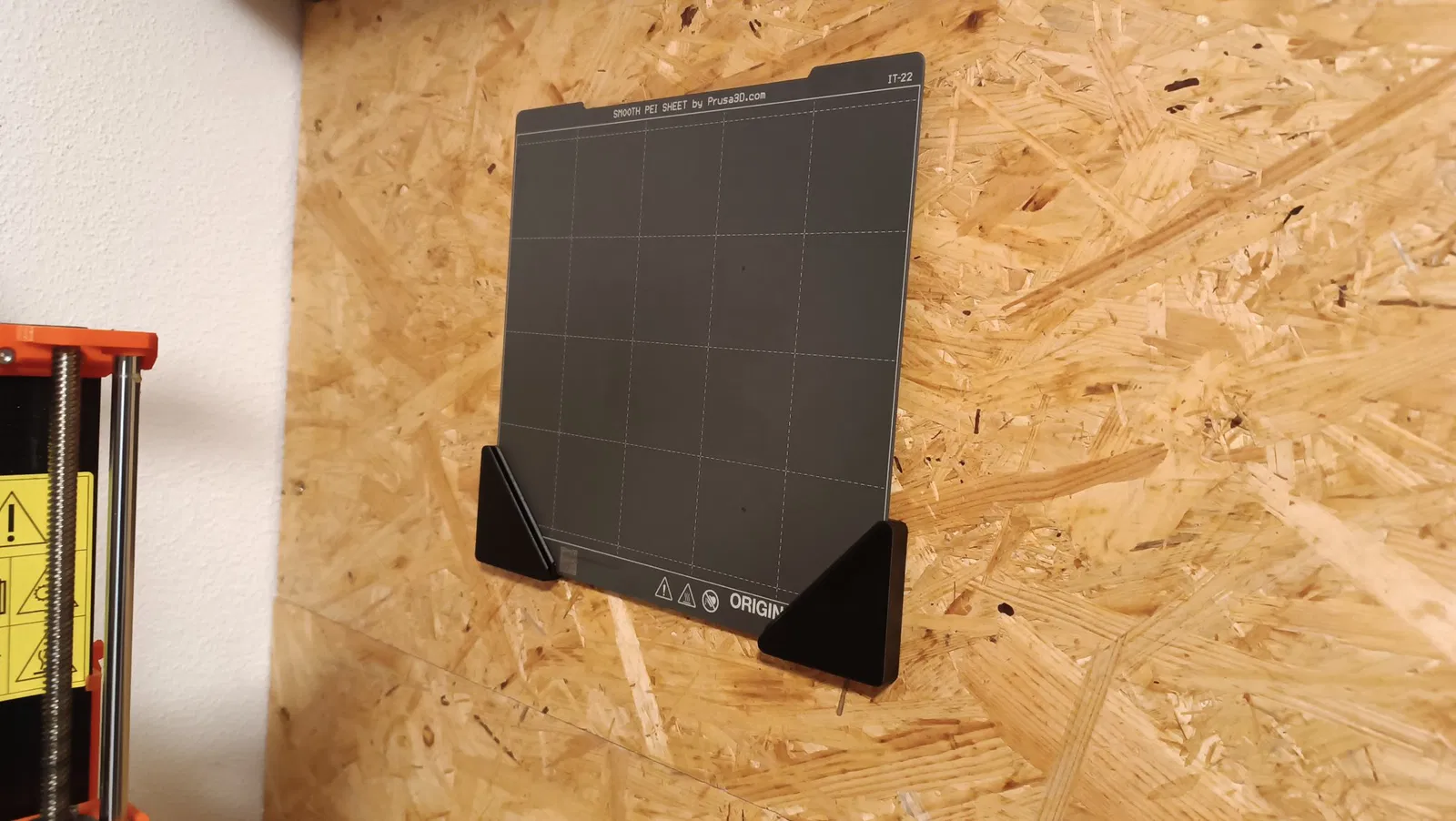 Chân đế giữ tấm PEI này có thể để được tới 2 tấm và bạn có thể bắt vít lên tường để treo.