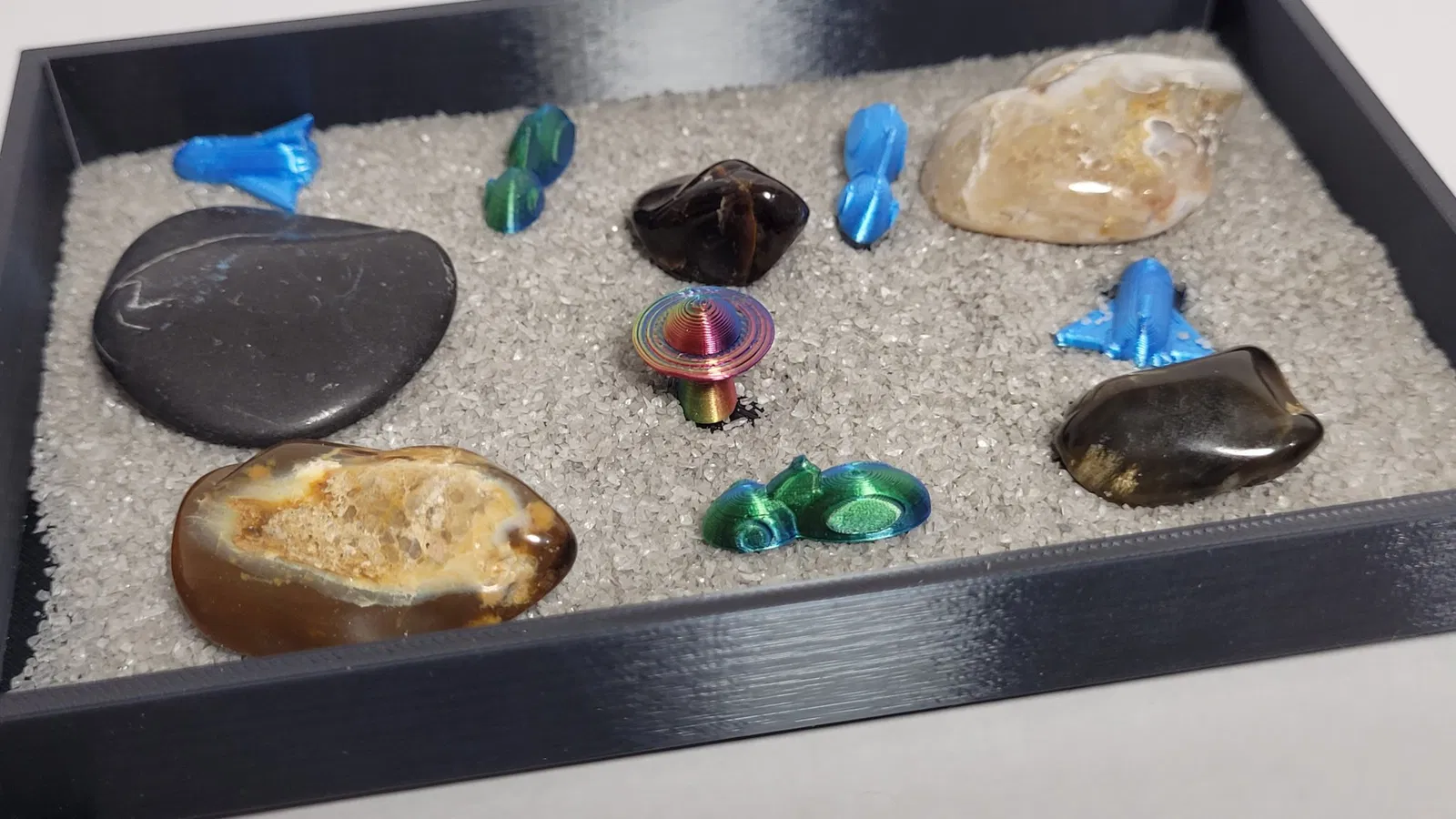 Món đồ chơi fidget "Cá Mập Cát Thiền Định" dễ in, thích hợp làm thú cưng hoặc trang trí. Bạn cần nam châm 3x3x3mm, đá và cát để hoàn thiện. Thích hợp cho mọi lứa tuổi, có thêm các chi tiết UFO và tàu bay nhỏ. Sử dụng tay cầm để di chuyển và tạo cảnh quan trong cát.