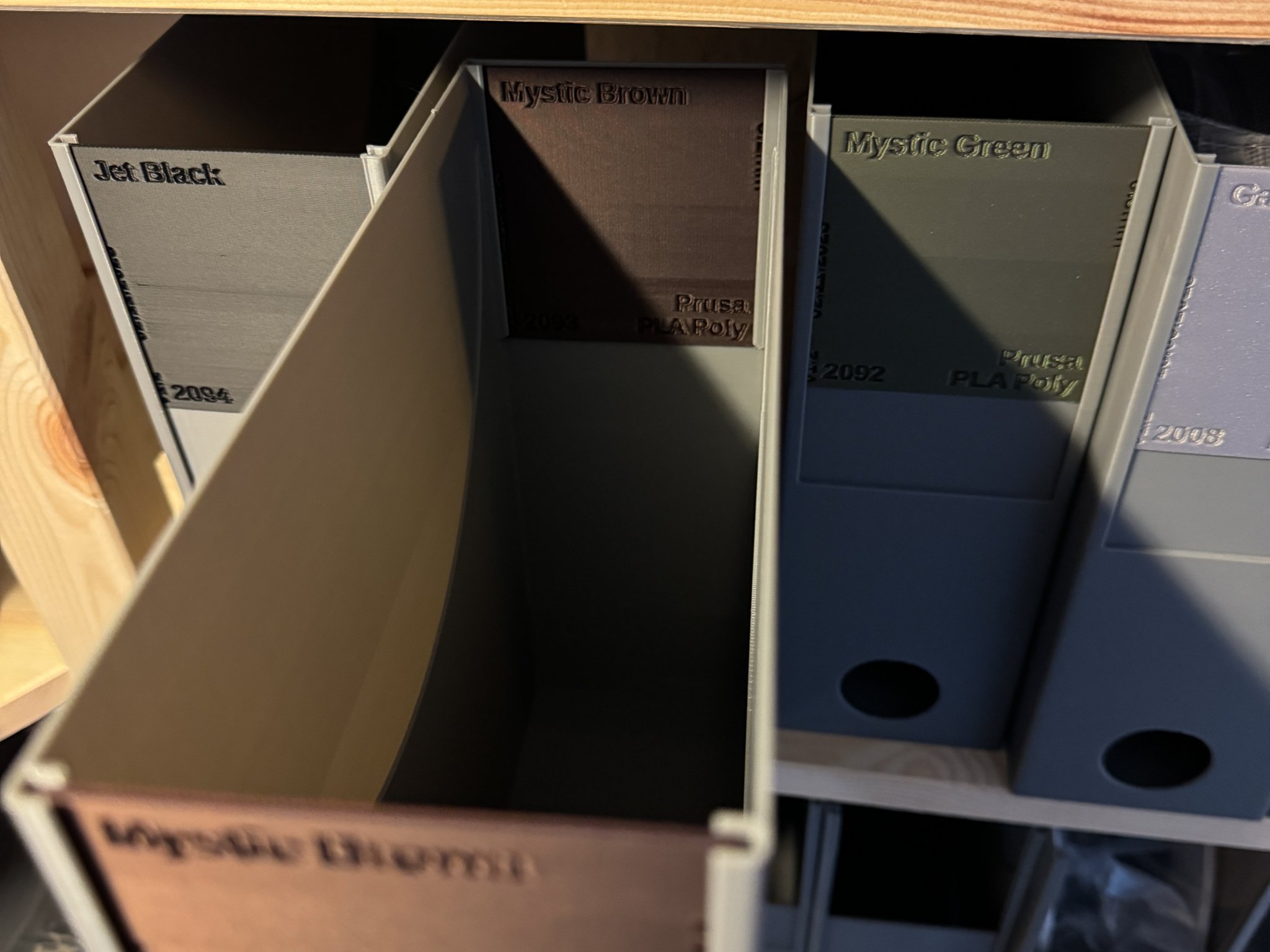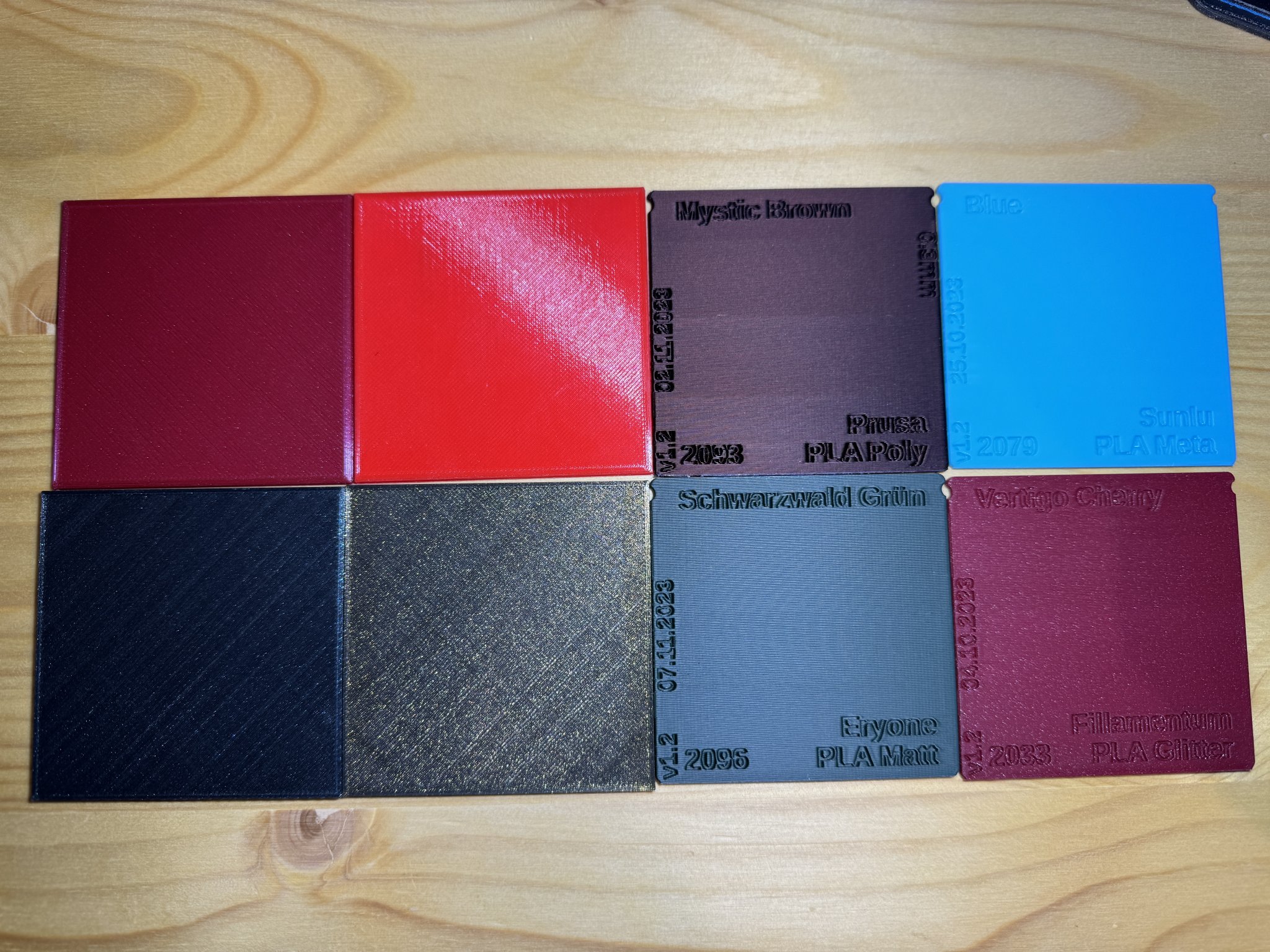 Còn với mấy loại filament đặc biệt như Prusament Mystic Brown/Green á, mà nhìn nó khác tùy theo cài đặt như chiều cao lớp in á, thì tui có làm thêm một phiên bản mà có thể nhét thêm một cái bảng khác ở phía sau nữa.