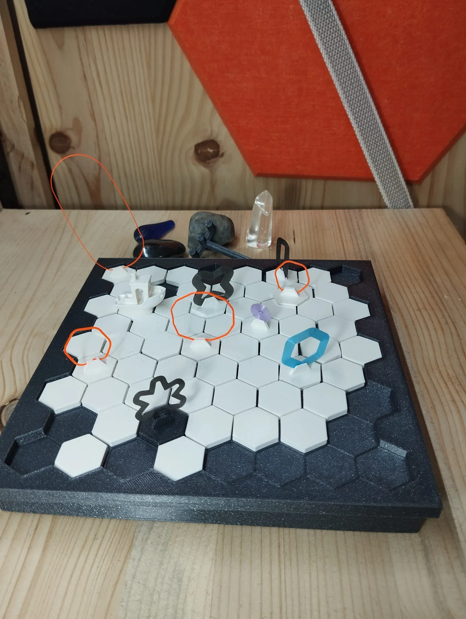 Các hình lục giác cát có kích thước tường là 11,3 mm. Tôi đã tạo chúng dày 1,2,3,4 và 5 mm, nhưng bạn có thể tạo dày hơn. Tùy theo sự sáng tạo của bạn. Khu vườn Zen có một ngăn dưới để chứa các mảnh ghép. Và không thể thiếu cái cào!!