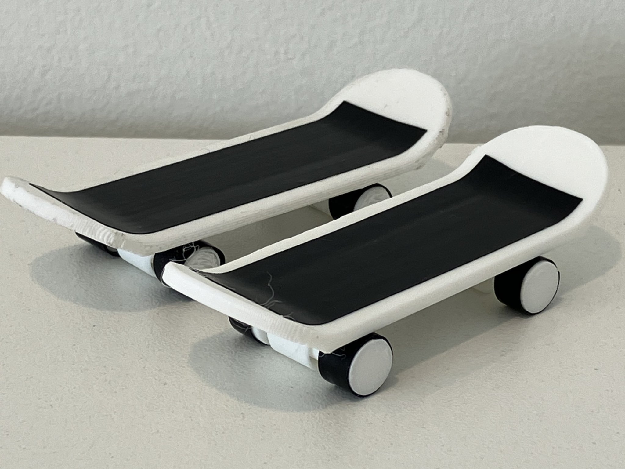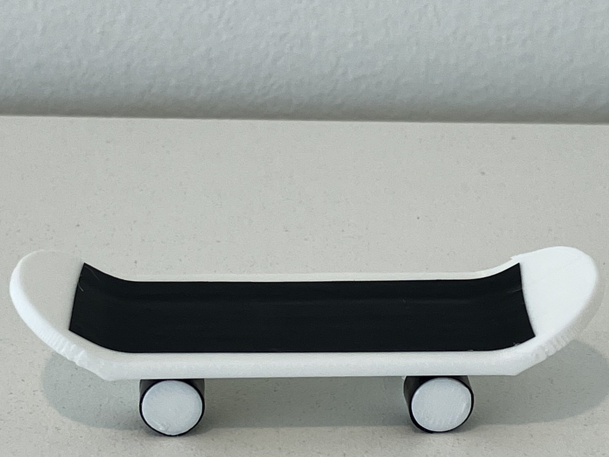 This is my first design! Ever since I started 3d printing I wanted to learn how to design stuff. This is what I came up with, this is a Print-In-Place finger skateboard or fingerboard. This is similar to a Tech Deck but a lot cheaper. This skateboard is fully customizable.