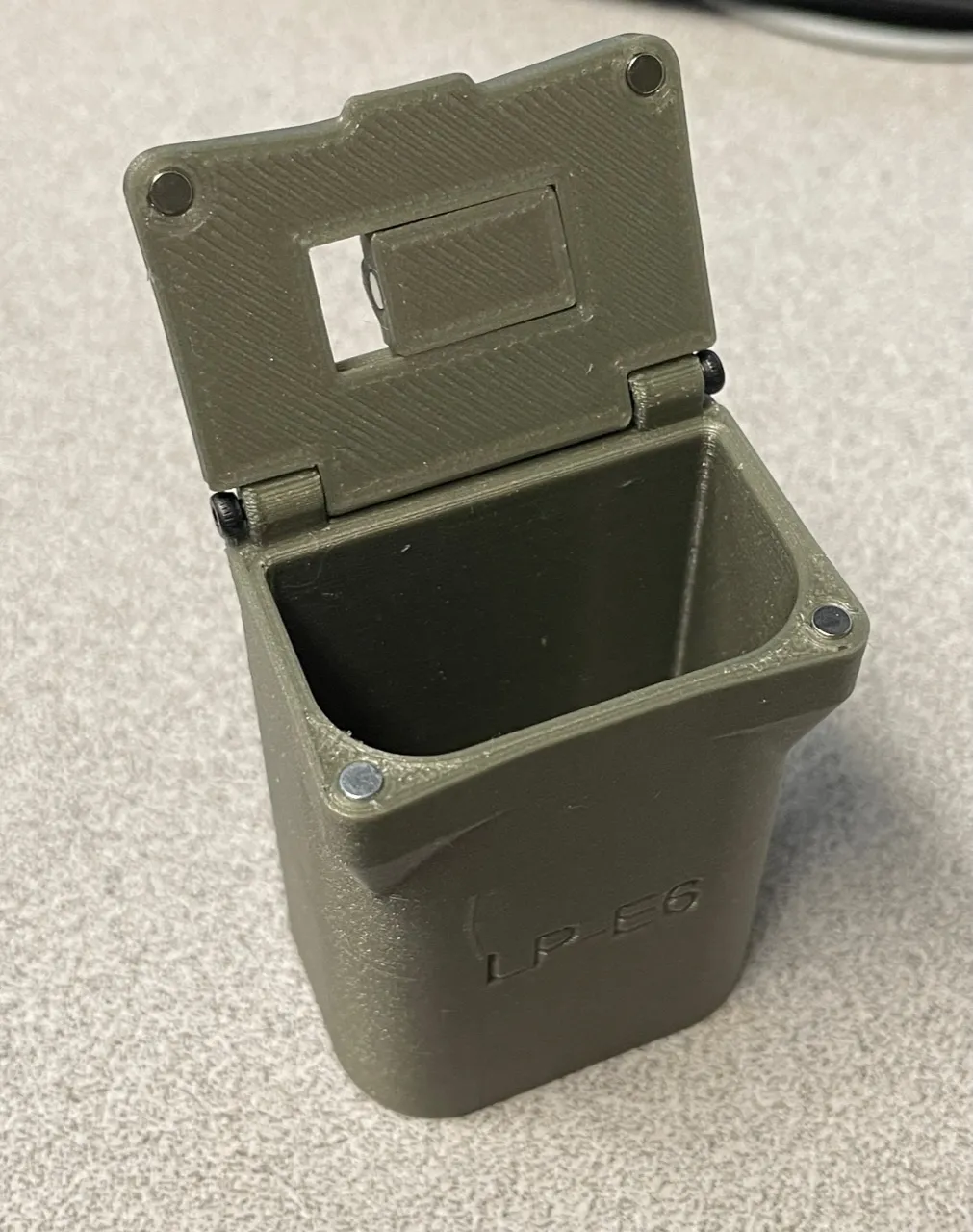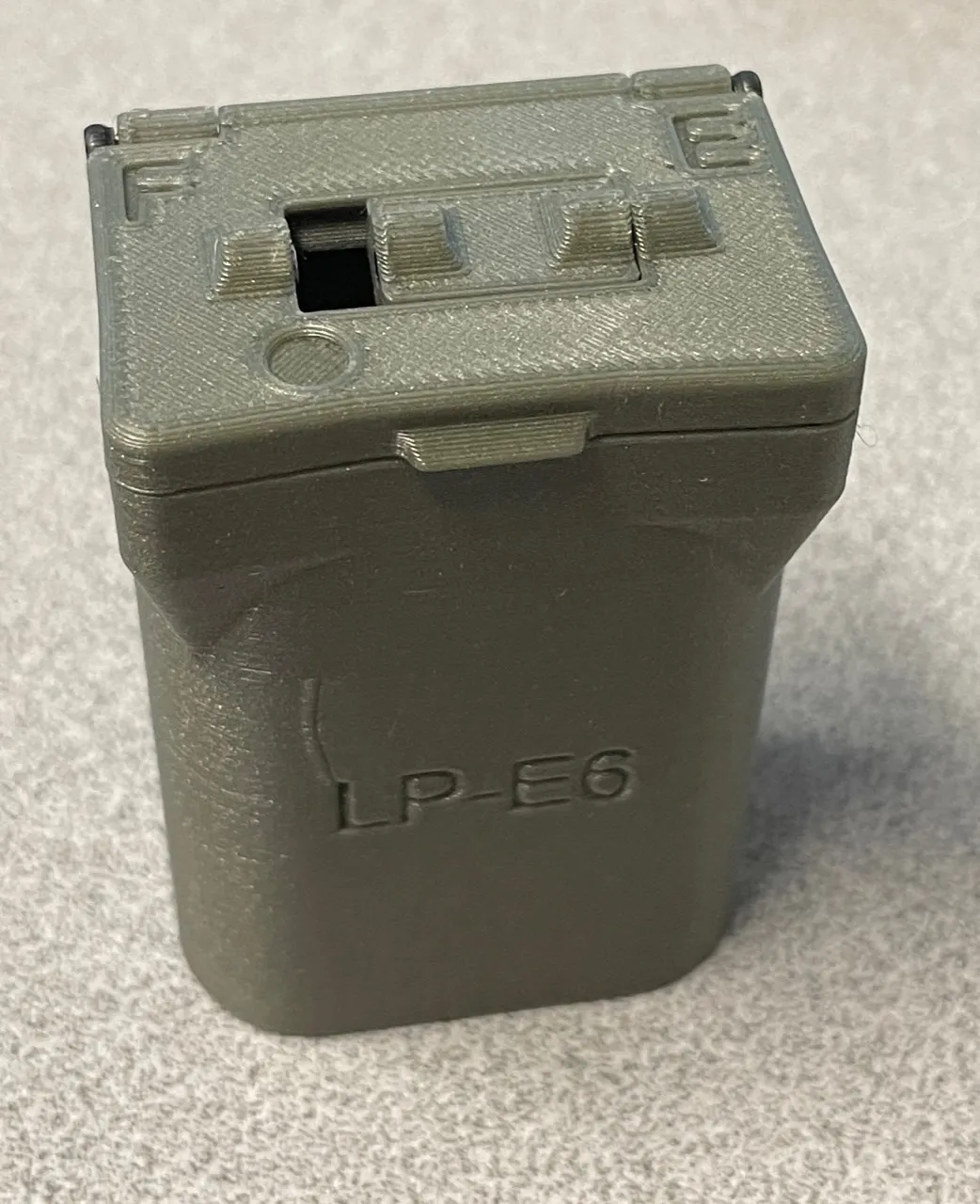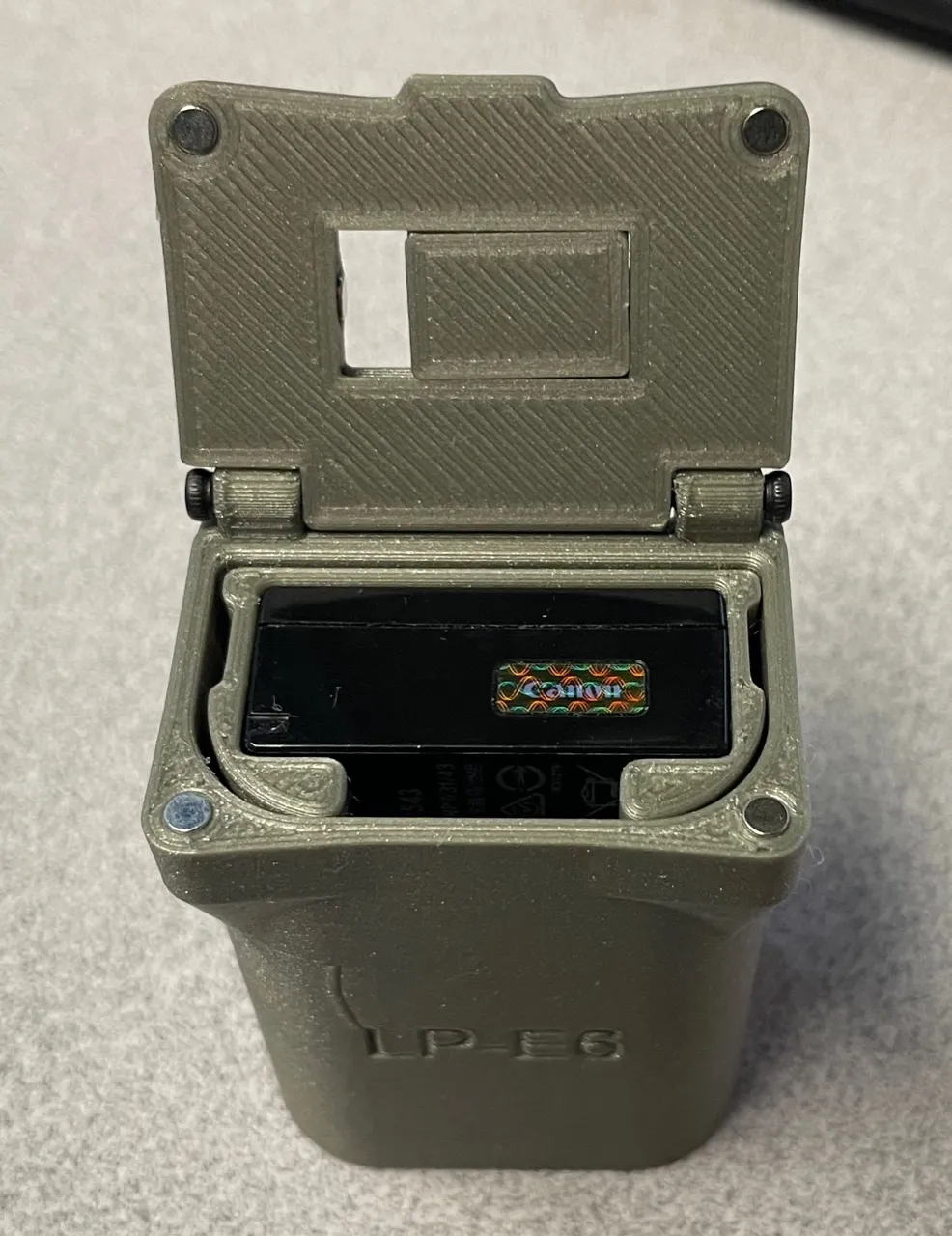 Cái hộp đựng pin này là dành cho pin Canon LP-E6 phổ biến, hay được dùng cho nhiều máy ảnh full frame và crop sensor của Canon.