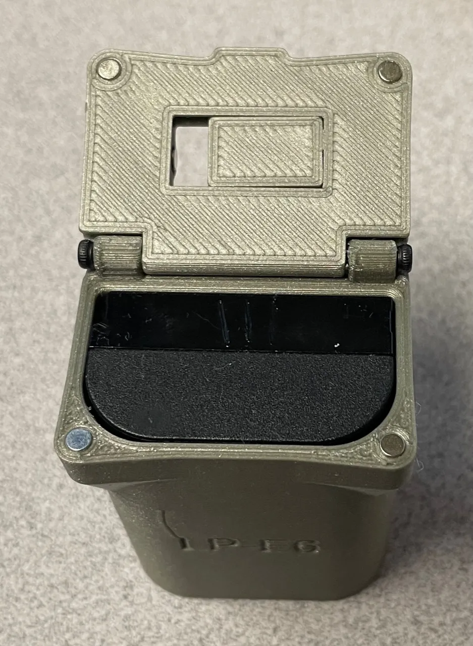 Hộp đựng pin này cho pin Canon LP-E6 phổ biến trên máy ảnh full frame và crop sensor. Có thanh trượt đánh dấu pin đã sạc hay chưa, giữ bằng nam châm, kèm adapter cho pin LP-E17.
