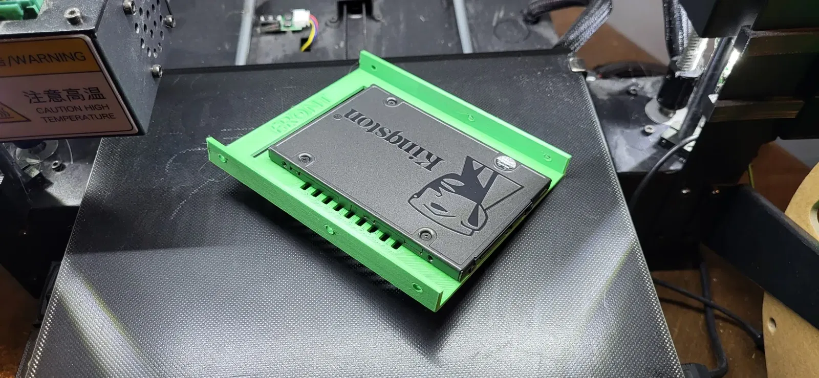 Ngàm ổ cứng trong hình được in bằng PLA Overture Matte Green.