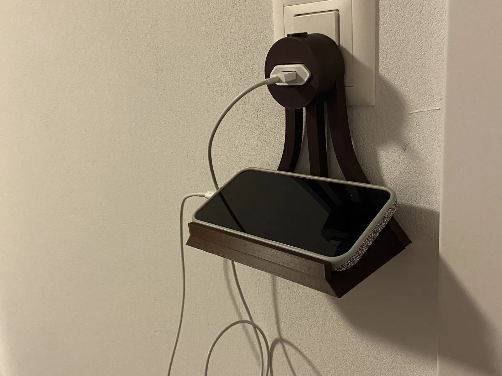 Không cần kệ hay dây cáp dài với trạm sạc iPhone này. In 100%, kèm ốc và dụng cụ. Thích hợp cho củ sạc iPhone (phiên bản trước USB-C). Giúp điện thoại không còn phải đặt lung tung trên sàn hay kệ nữa.