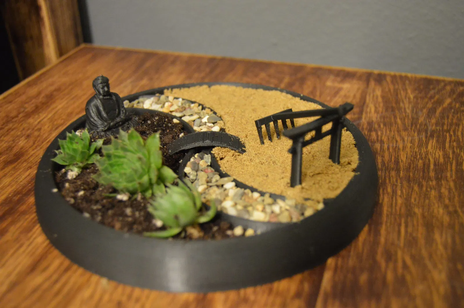 Mang đến sự bình yên và thư thái cho không gian của bạn với mô hình Khu vườn thiền Jing-jang. Mô hình này là sự kết hợp độc đáo giữa triết lý Zen và nghệ thuật sắp đặt, tạo nên một ốc đảo nhỏ cho tâm hồn. Thích hợp để trang trí bàn làm việc, kệ sách hoặc bất kỳ đâu bạn muốn tìm kiếm chút tĩnh lặng.