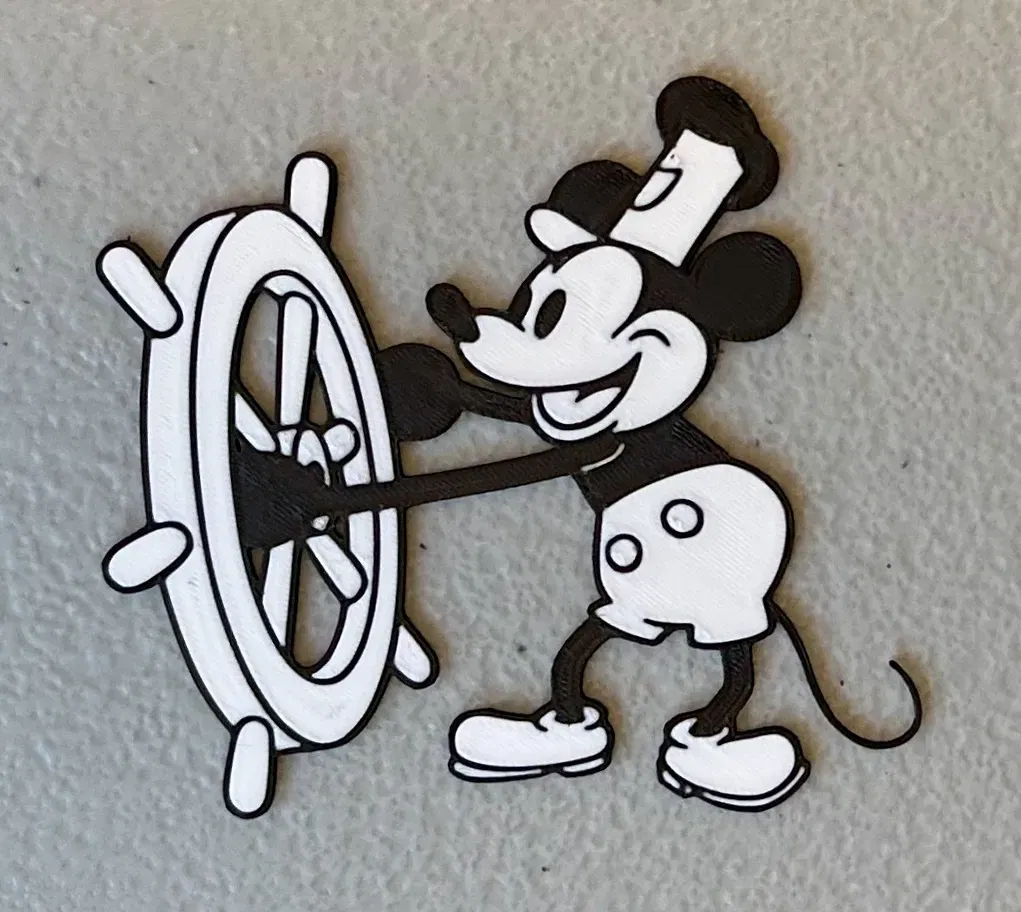 Mô hình nam châm Steamboat Willie này được thiết kế để in với máy Bambu Lab AMS, sử dụng 2 màu. Khuyến nghị in với đầu phun 0.2mm và chiều cao lớp 0.14mm. Sử dụng nam châm Marietta Magnetics 30mil là tốt nhất.