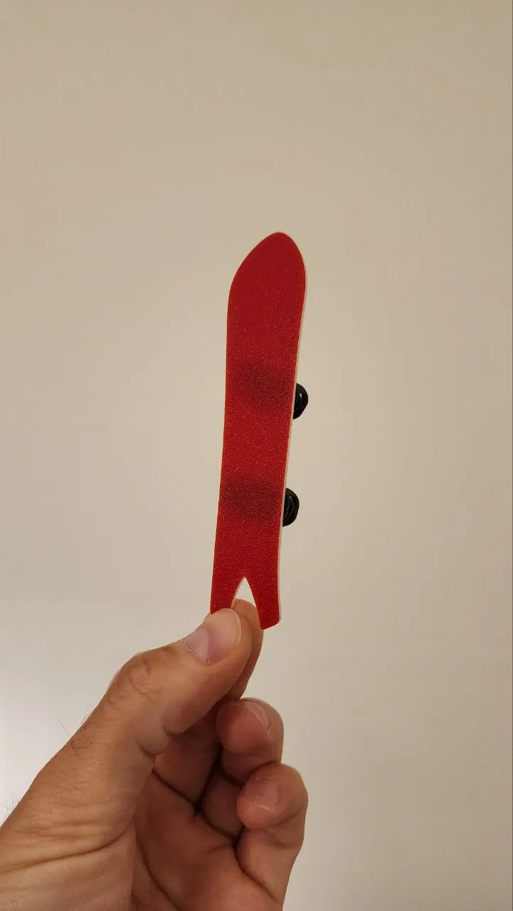 Ván trượt tuyết hình Corua có pát. Hướng dẫn cách tạo hình ván trượt tuyết bằng máy in 3D sau khi in xong. Nhiệt độ làm mềm nhựa PLA là 65 C. Đặt ván trượt lên khay máy in khoảng 1 phút rồi lấy ra tạo hình bằng tay.
