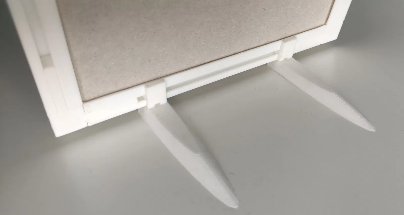 Cái đế này cho phép bạn dựng khung hình thay vì treo. Có 4 phiên bản nghiêng khác nhau (0, 10, 15, 20 độ) và bạn cần in thêm khớp nối. Cần 2 đế cho một khung hình. Có thể cần điều chỉnh dung sai hoặc dùng kẹp để lắp.