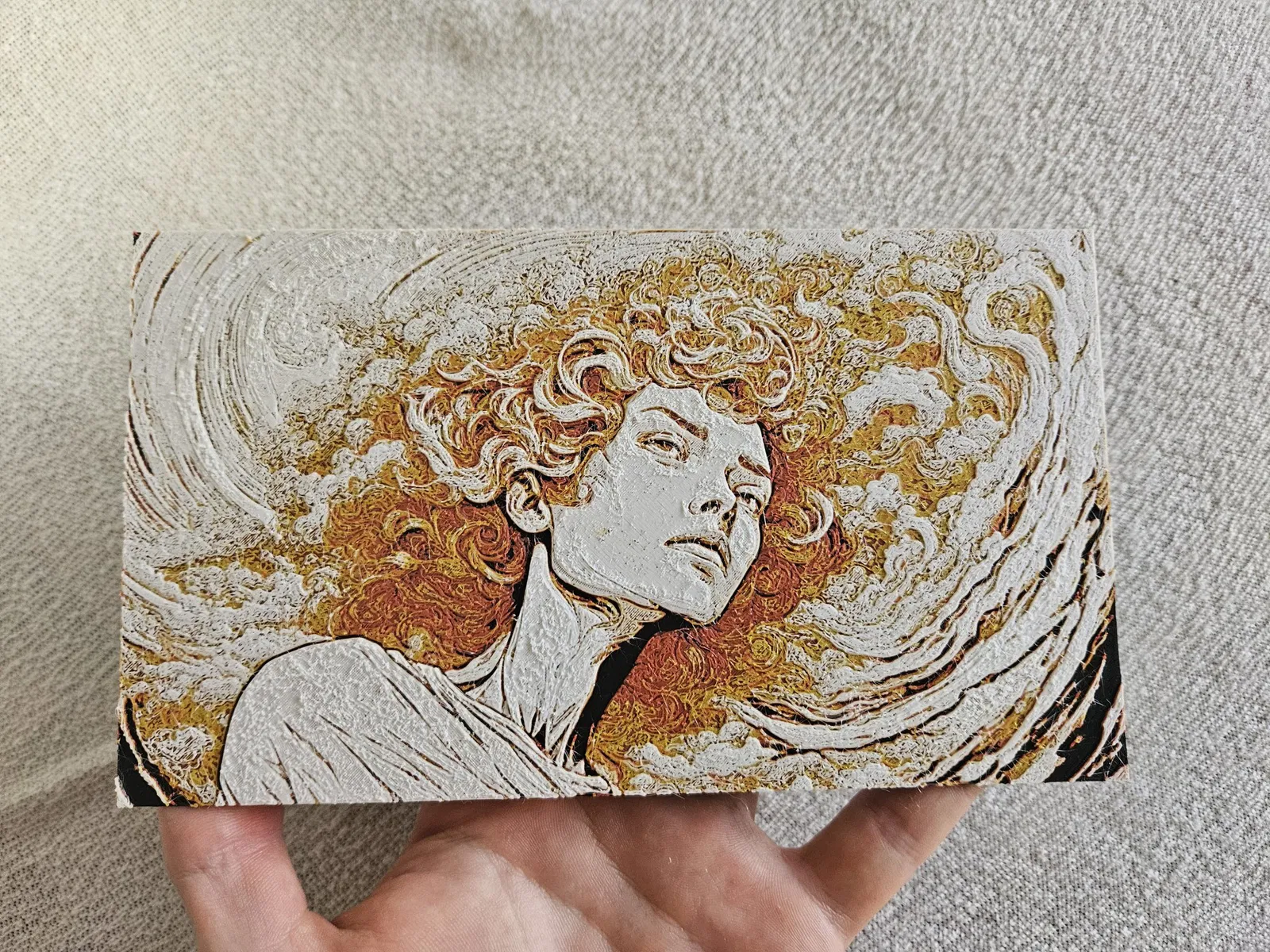 Mô hình Storm Lady - HueForge, in đa sắc thủ công. Chỉ cần thay filament ở các lớp được mô tả! Sử dụng màu đen, trắng, đỏ và vàng để tạo hiệu ứng ấn tượng.