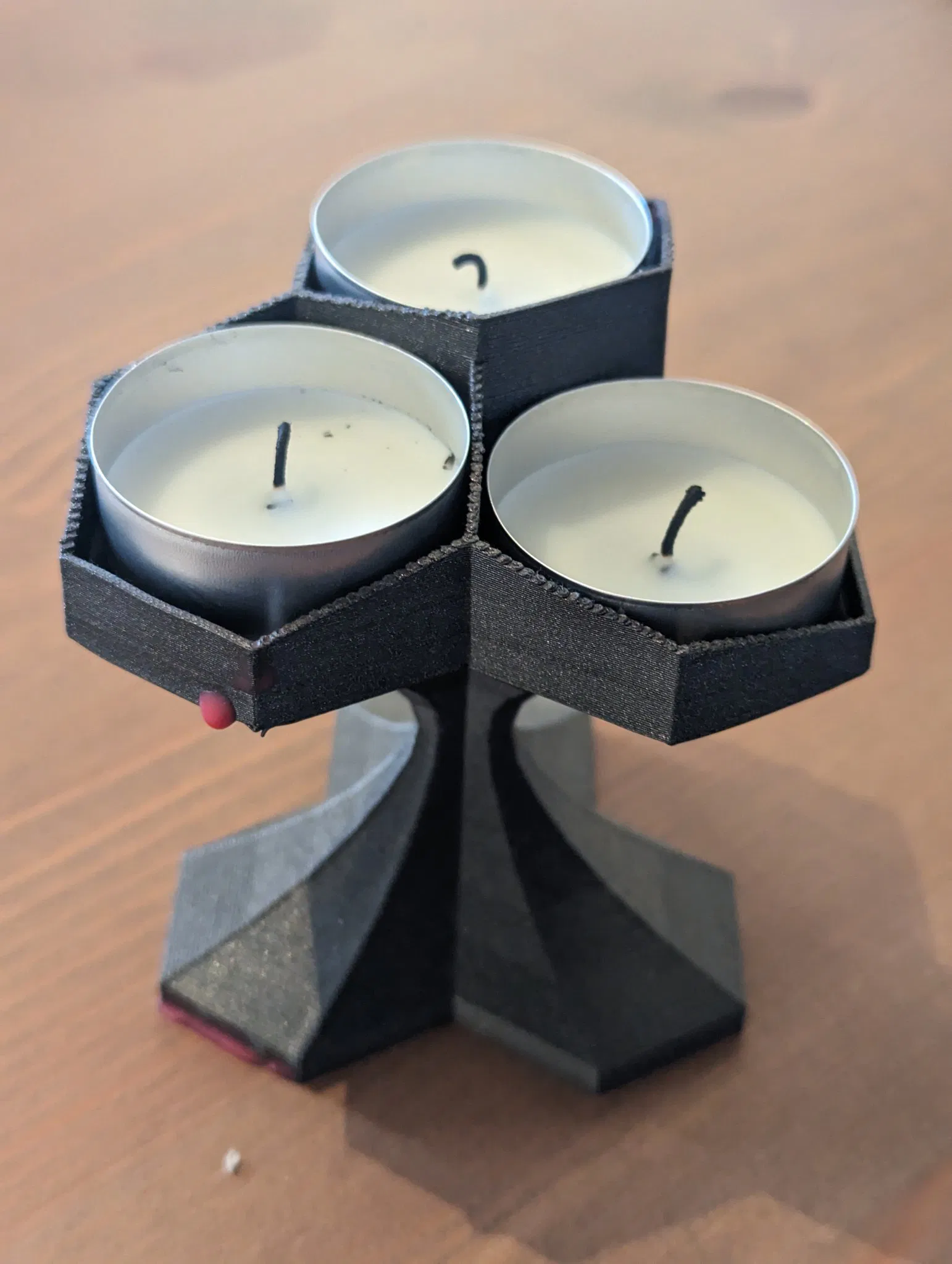 Chiếc chân nến tealight này có thể để được 3 cây nến tiêu chuẩn, in 3D không cần dùng support luôn nha. Rất tiện lợi để bạn trang trí không gian sống thêm lung linh đó.