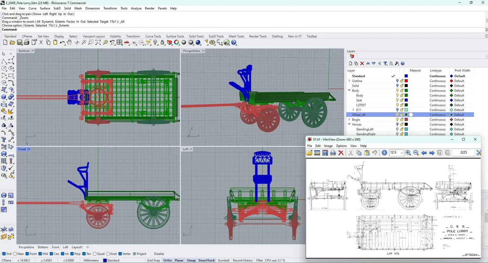 Mô hình đầu tiên này khá đơn giản, vì tôi mới bắt đầu thiết kế và in các loại mô hình này và chưa có nhiều nguồn thông tin về chủ đề này. Trong khi đó, tất cả những điều này đã được cải thiện, và tôi có rất nhiều bản vẽ về xe ngựa được chế tạo cho các tuyến đường sắt Anh (chủ yếu là GWR & LMS). Vì vậy, tôi cảm thấy đã đến lúc bổ sung cho thiết kế trước đó của mình với một thiết kế chi tiết hơn, tốt hơn, dựa trên các bản vẽ điển hình thời đó. Dưới đây là hai phiên bản đầu tiên của những chiếc xe ngựa tốt hơn này… LOT975 là một chiếc xe chở hàng có trục được thiết kế vào năm 1914 cho Great Western Railway (GWR). D11 dựa trên xe Diagram11 được chế tạo cho cùng một tuyến đường sắt (không có năm được ghi rõ), nhưng có nhiều xe tương tự được sử dụng bởi các tuyến đường sắt và công ty khác.