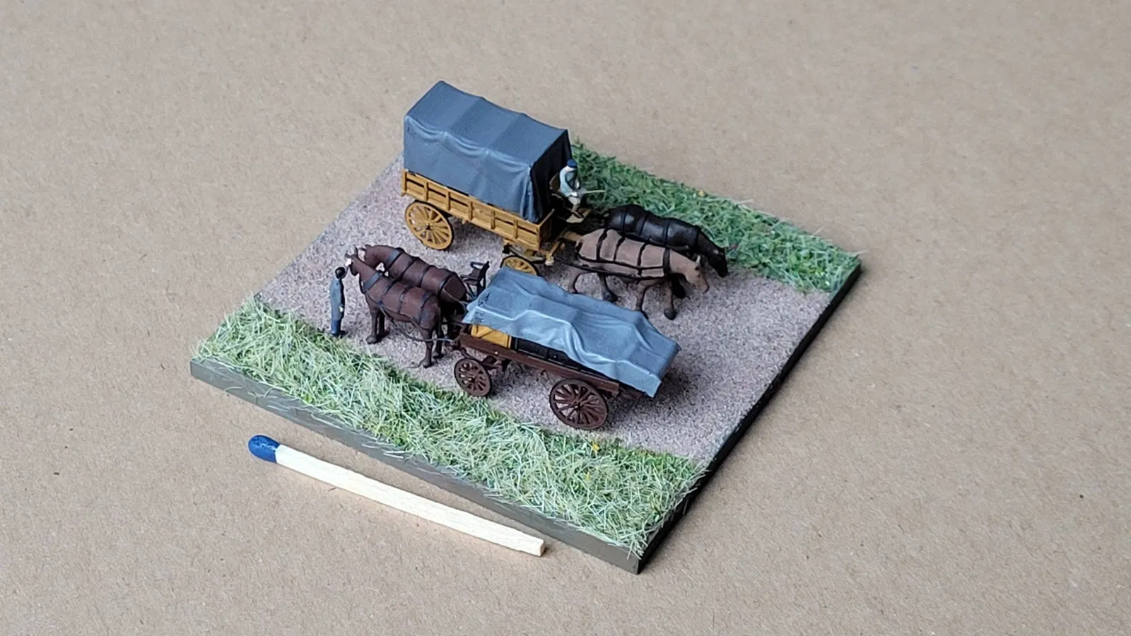 Ở tỷ lệ lớn hơn, bạn có thể sử dụng dây đồng hồ để nối ngựa với người đánh xe.