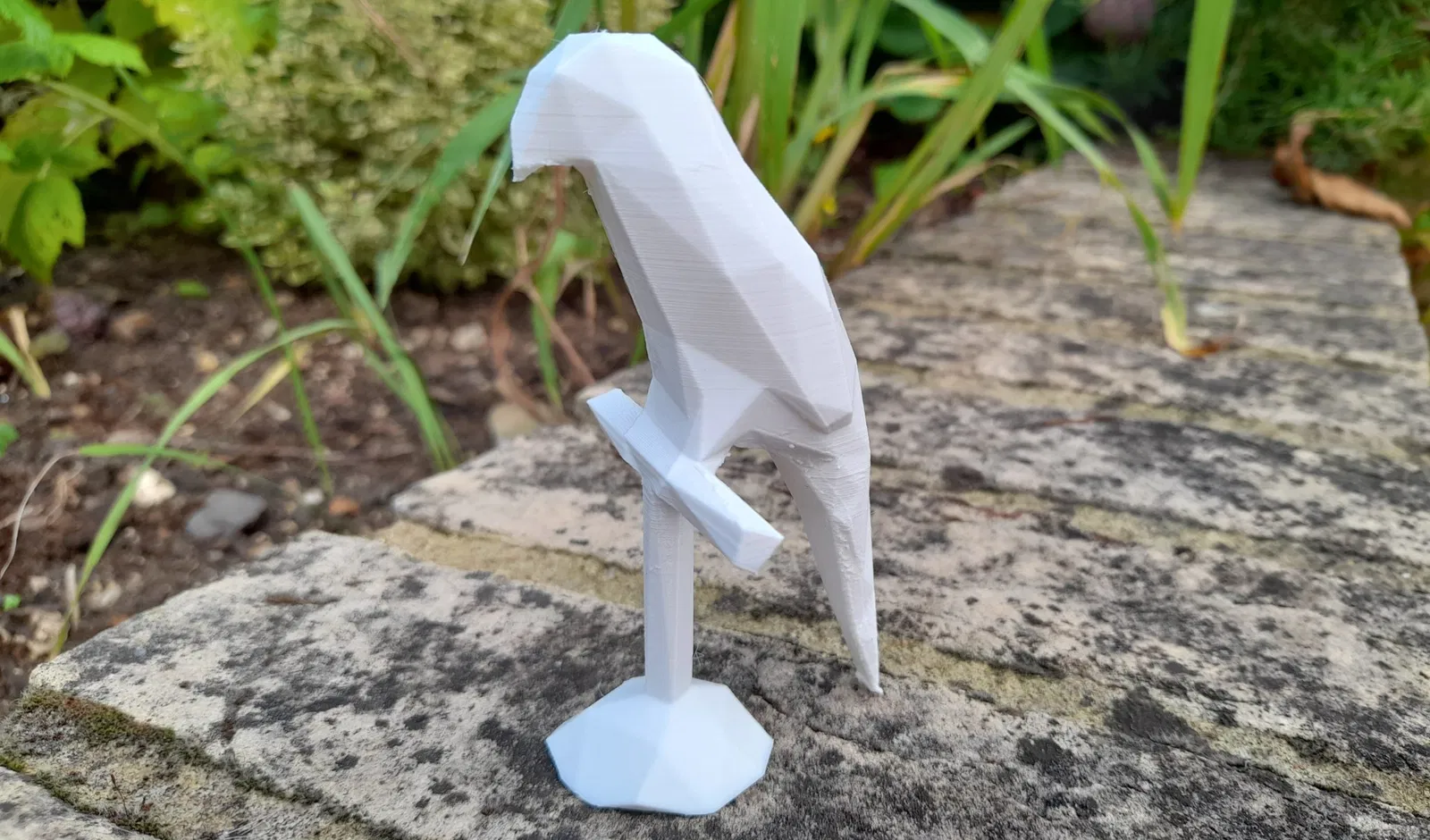 Một mô hình khác do con trai 16 tuổi của tôi tạo ra, lần này là một con vẹt. Mô hình của một chú bồ câu này được tạo ra trong Blender phiên bản 2. 93. 0 và bắt đầu từ một hình cầu. Với sự trợ giúp từ các công cụ điêu khắc và bộ sửa đổi decimate, hình cầu đã được định hình thành một con vẹt và giá đỡ sau đó được tạo ra để giữ con chim. Mô hình này đã được in bằng Signal White PETG và tệp gcode bao gồm nhiều hỗ trợ cho mô hình. Đây là một mô hình low poly khác mà anh ấy đã tạo ra và nếu bạn muốn xem thêm thì hãy kiểm tra những mô hình low poly này nữa nhé! https://www. printables. com/model/556589-low-poly-dove