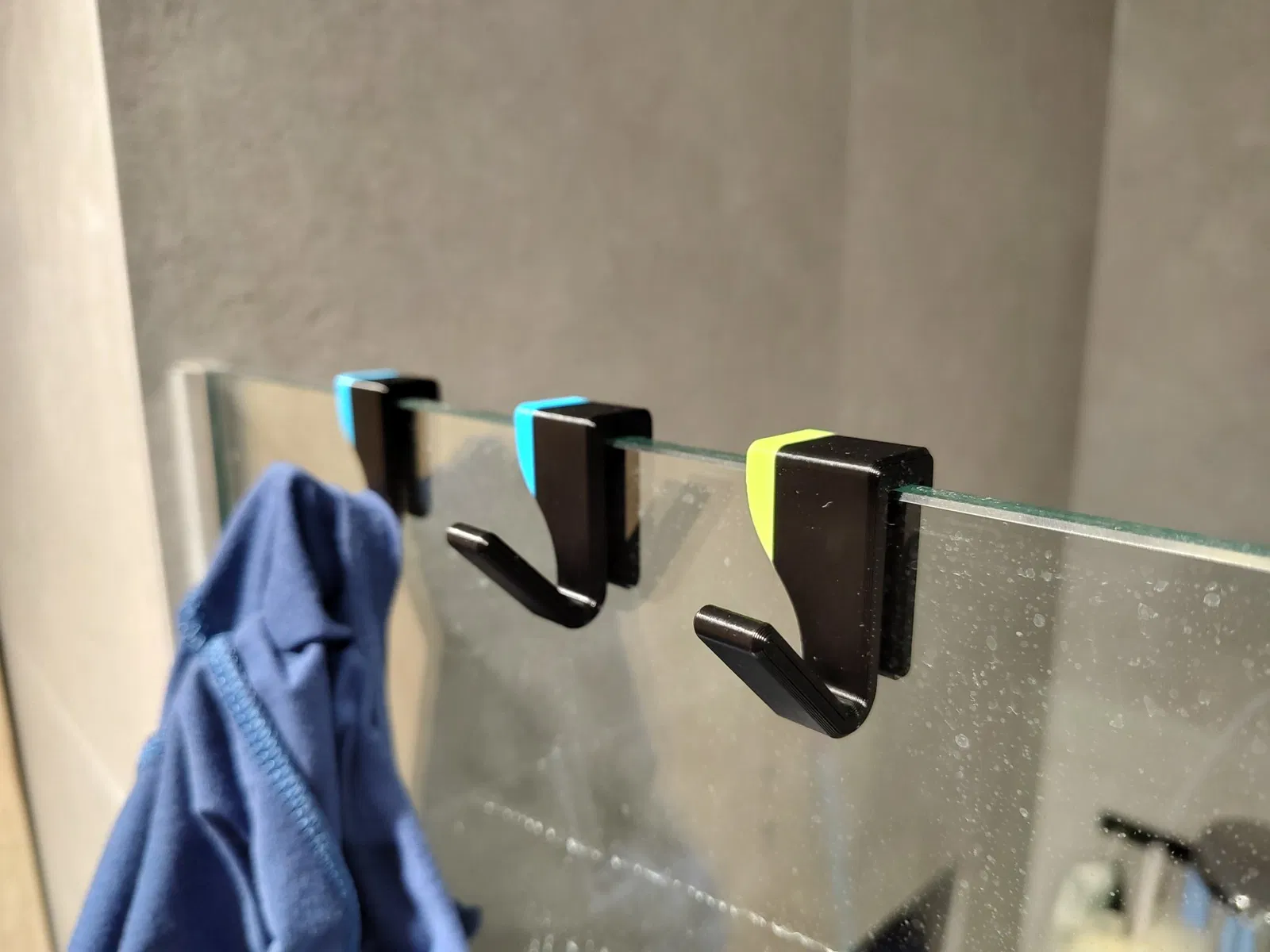 Kẹp Cạnh Kính là thiết kế tối giản cho kính 8mm, hoàn hảo cho phòng tắm. Kẹp PLA in 3D này có thay đổi màu sắc ở 18mm để tạo hiệu ứng đẹp mắt, giúp treo khăn và phụ kiện gọn gàng.