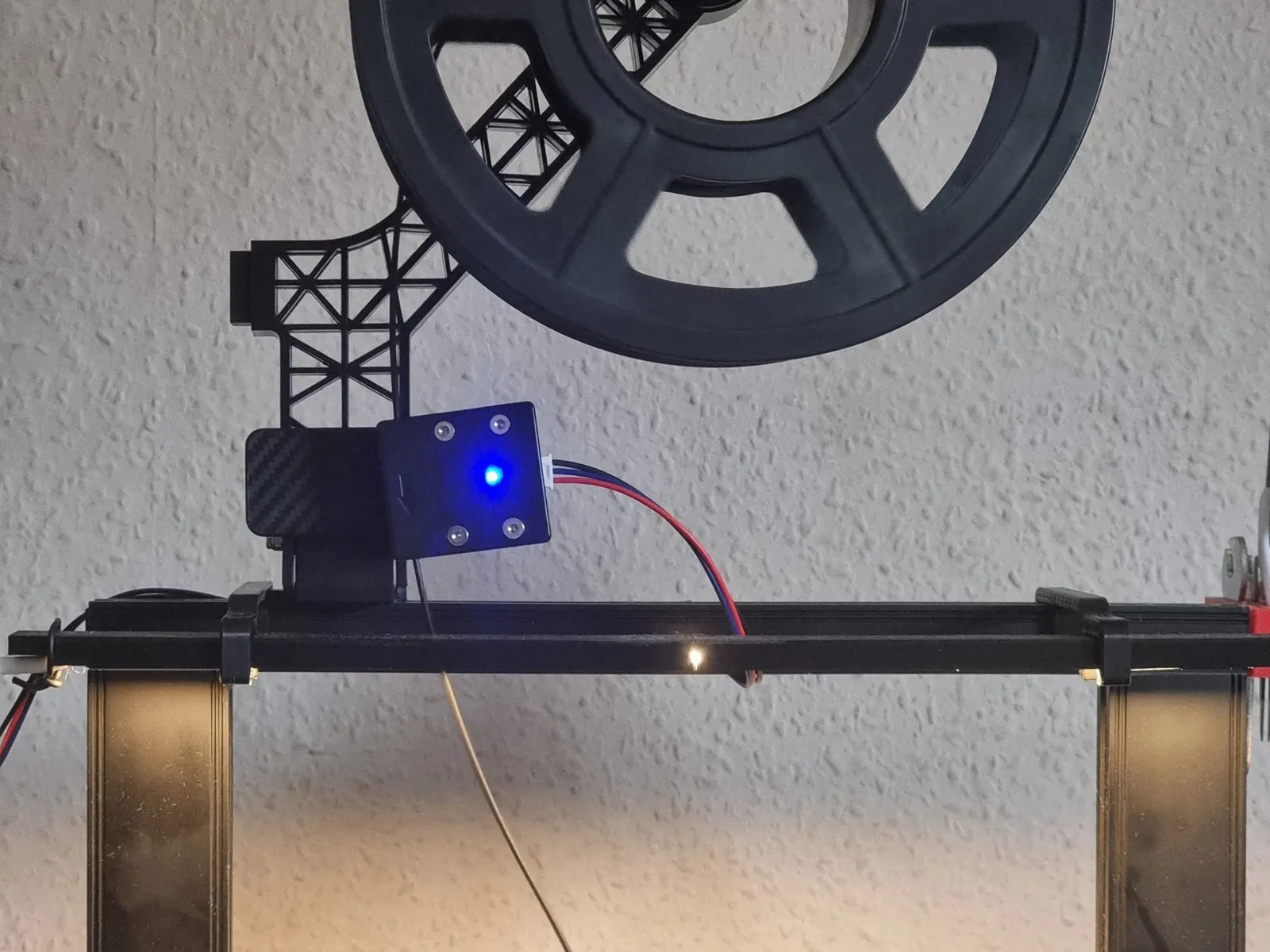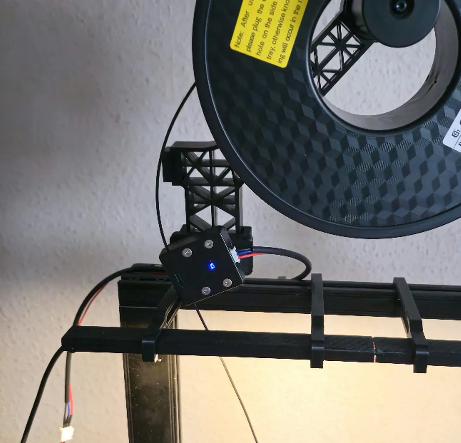 Mình đã chỉnh sửa lại cái bracket cảm biến dây tóc cũ để nó gài vô cái Giá đỡ cuộn dây tóc xoay của Creality.