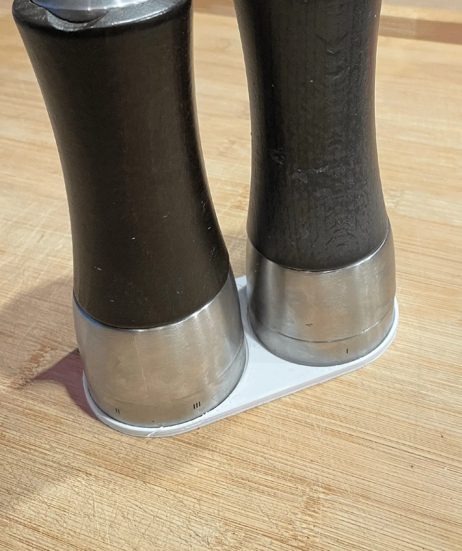 Để cối xay tiêu và hũ muối luôn nằm ngay cạnh nhau, tui đã chế tạo ra cái đế này. Cối xay tiêu và hũ muối có đường kính 61 cm. Mẫu này được thiết kế hơi rộng một chút, để cối xay đứng vững chãi bên trong. Nhờ có chữ S và P, mỗi cối xay đều có vị trí riêng của mình.
